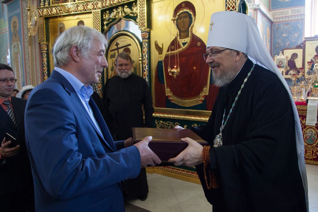 После проповеди Архиерей вручил Валерию Исаеву медаль Русской Православной Церкви преподобного Серафима Саровского II степени, а затем слово взял временно исполняющий обязанности Губернатора Красноярского края Александр Усс: