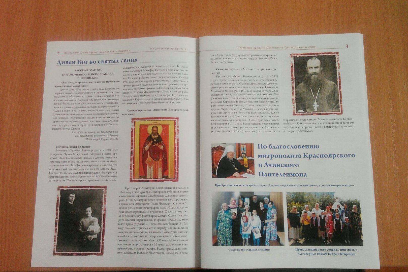 Прихожанам Трехсвятительского храма города Красноярска представили свежий выпуск православной духовно-просветительской газеты «Златоуст».
