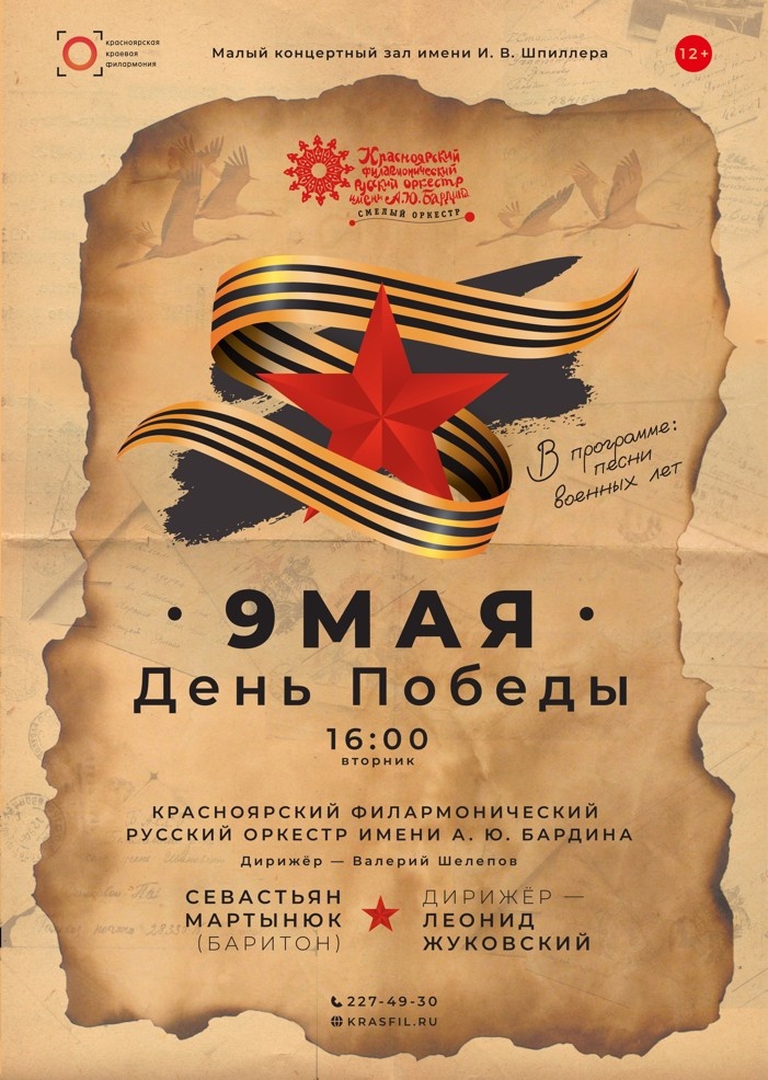 Начало 9 мая в 16:00. Билеты на концерт можно купить на сайте Красноярской краевой филармонии и в билетных кассах.
