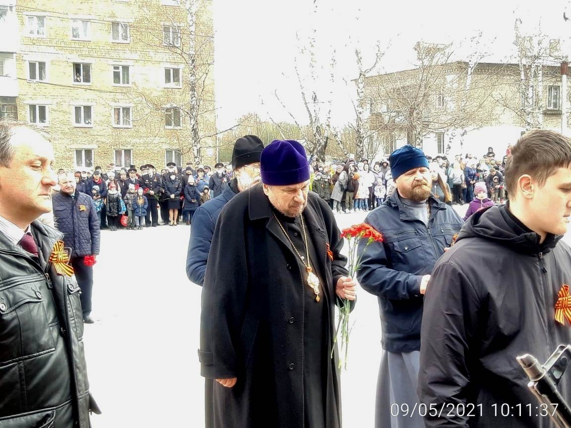 9 мая, в государственный праздник День Победы в Великой Отечественной войне, священнослужители Казанского кафедрального собора г. Ачинска, во главе с благочинным Ачинского округа, настоятелем собора митрофорным протоиереем Евгением Фроловым, приняли участие в праздничном митинге и возложили цветы к подножию монумента Скорбящей матери.