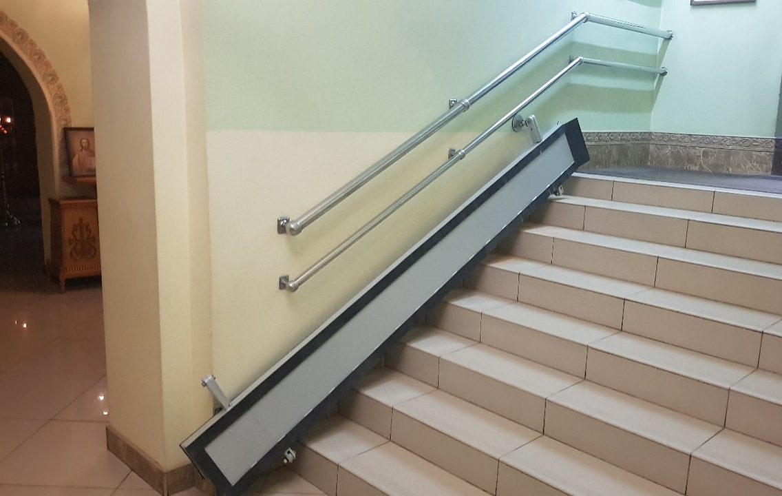 На цокольном этаже придела святого праведного Иоанна Кронштадского был установлен пандус. В ближайшее время на входе в храм будет смонтирован звонок для вызова сотрудников храма, которые помогут людям с ограниченными возможностями разложить пандус и спуститься или подняться по лестнице.