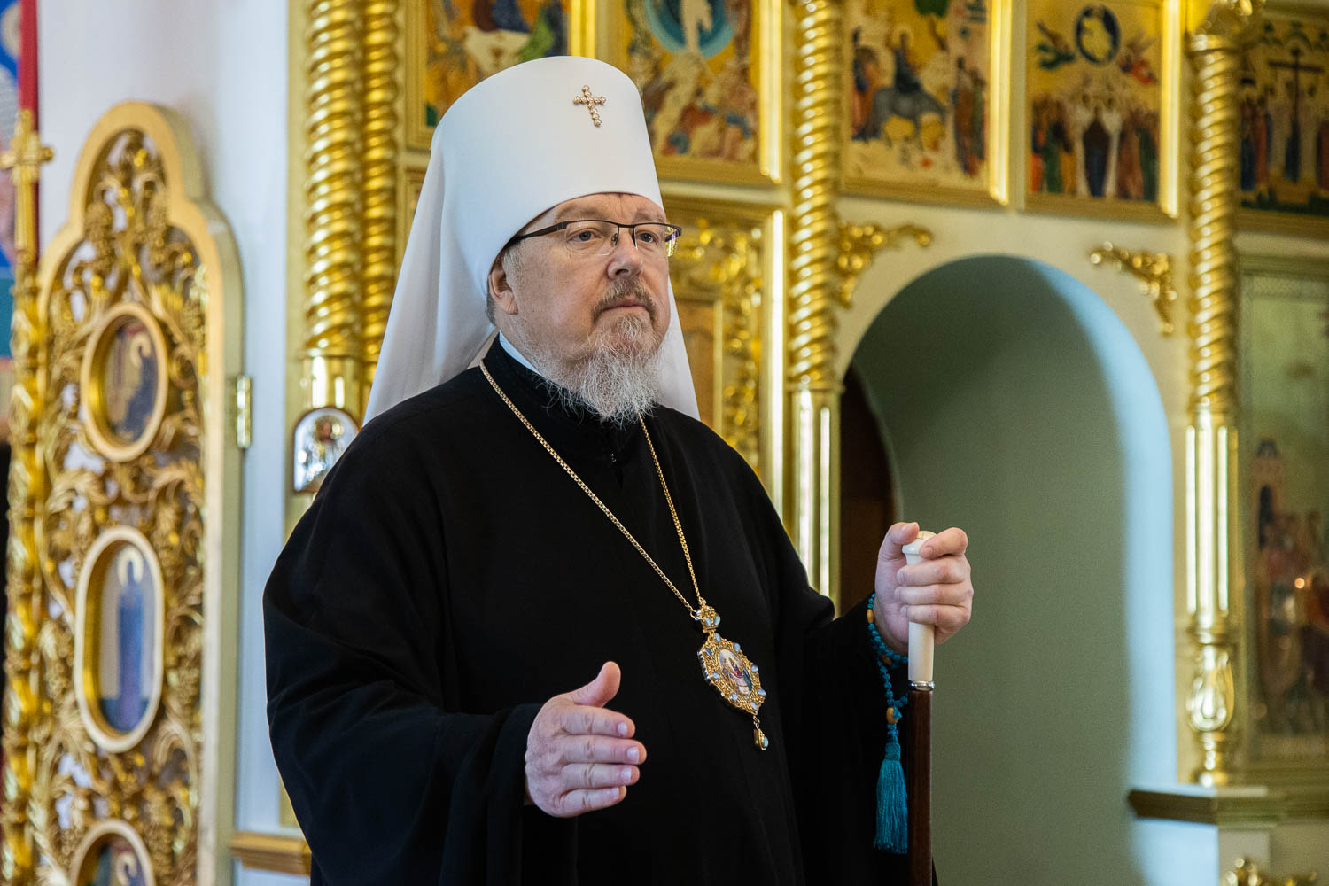 По окончании Божественной литургии митрополит возглавил крестный ход вокруг храма иконы Божией Матери «Всецарица» и обратился к верующим с архипастырским словом.