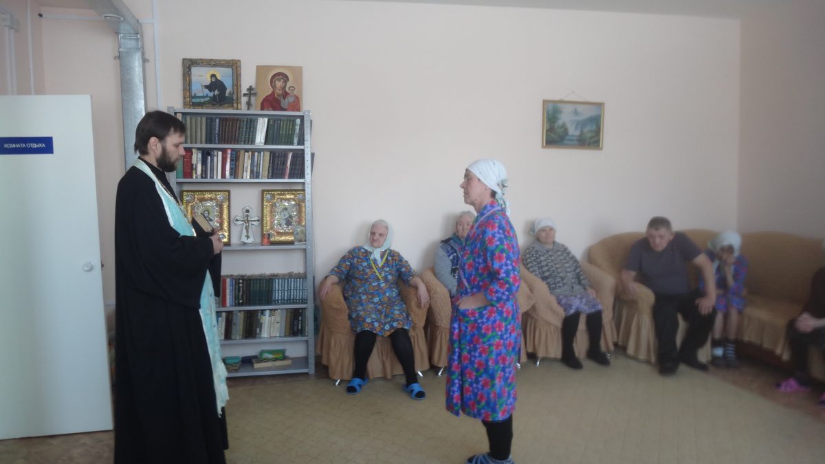 8 марта помощник благочинного церквей Шарыповского округа по миссионерскому служению иерей Алексий Щербаков посетил геронтопсихиатрическое отделение краевого центра «Тонус» в селе Родники.