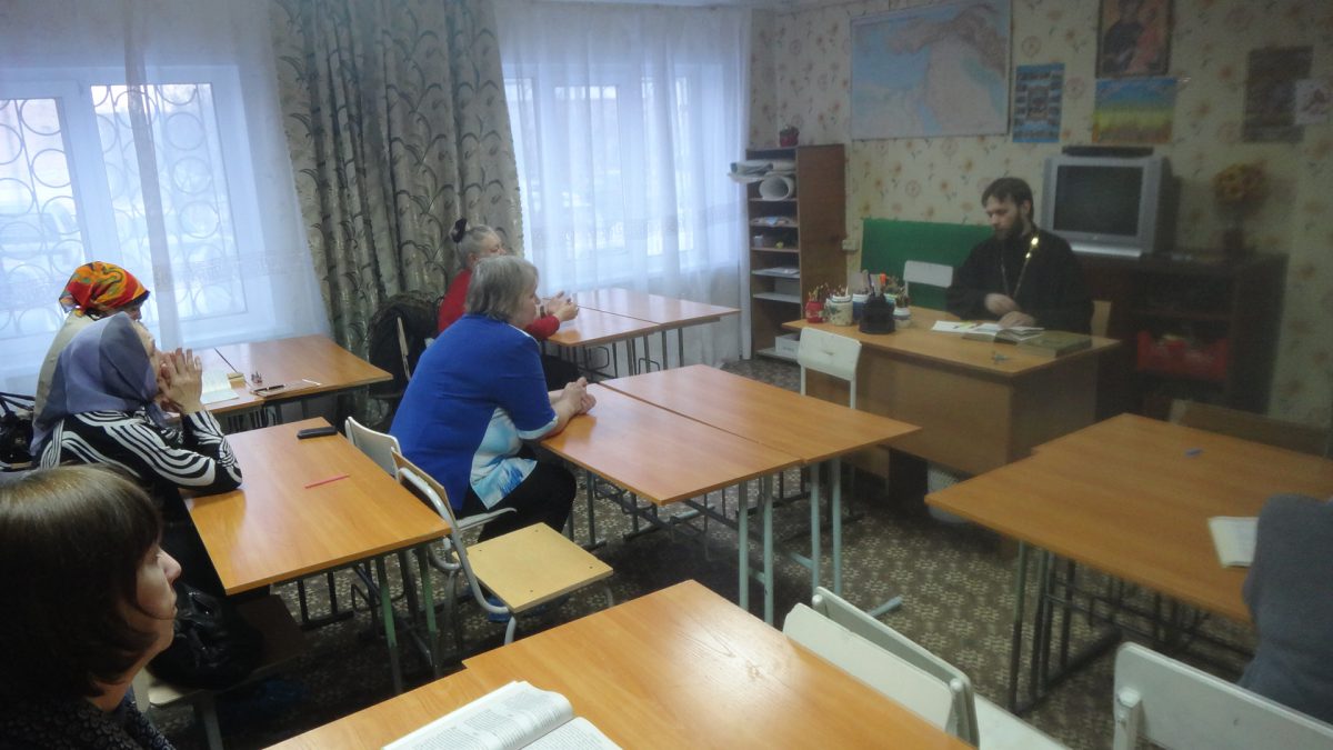 Занятия для взрослых прихожан проходят в здании воскресной школы святого апостола Матфея при Свято-Троицком соборе города Шарыпово.