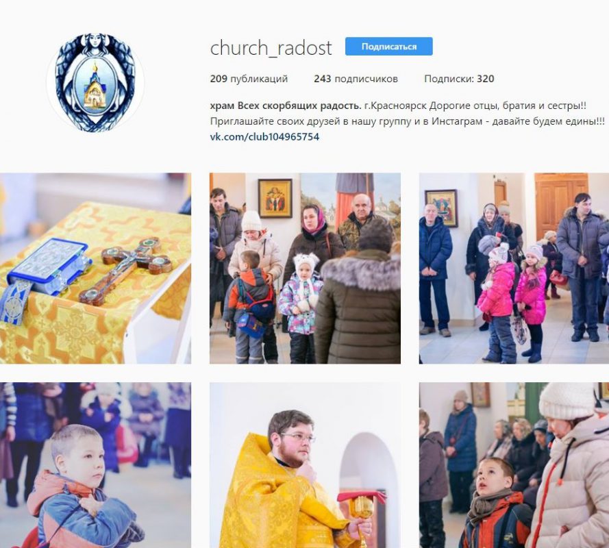 Через страницу в этой социальной жизни можно узнать больше о жизни общины верующих при храме в честь иконы Божией Матери «Всех скорбящих Радость» города Красноярска.