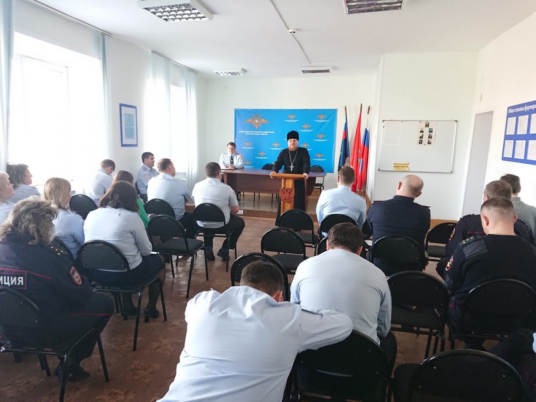 29 марта по просьбе работников службы психологической поддержки при Межмуниципальном отделе внутренних дел «Ужурский» состоялась встреча настоятеля храма святых апостолов Петра и Павла города Ужура протоиерея Павла Третьякова с личным составом подразделения.