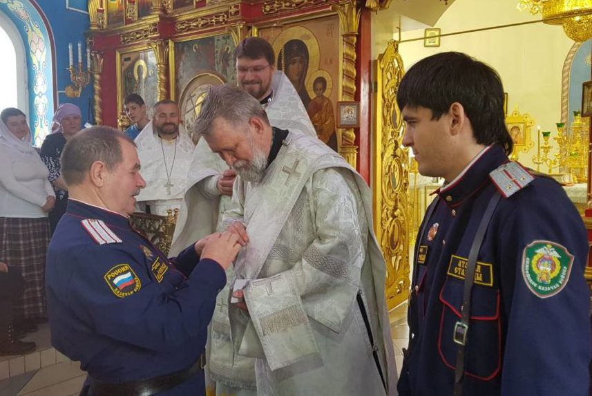 Медаль «200 лет Георгиевскому кресту» и атаманскую грамоту за вклад в развитие казачества на Назаровской земле вручили штатному священнослужителю назаровского Покровского храма протодиакону Евгению Колдышеву.
