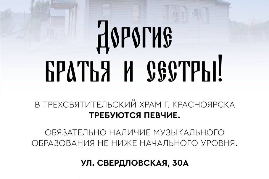 В красноярском Трехсвятительском храме объявлен набор в хор