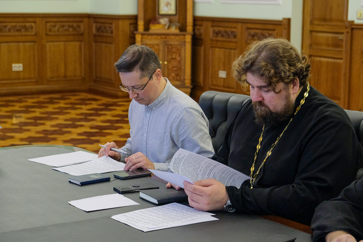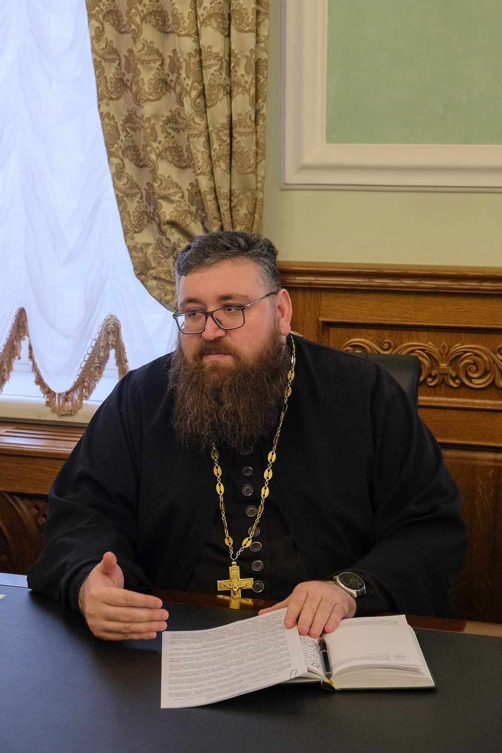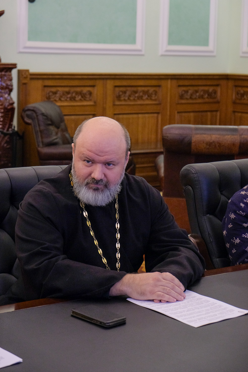 Вначале были обсуждены вопросы проведения педагогической конференции, которая состоится 30 октября, её содержание и роль как первого этапа краевых Рождественских чтений. Об этом присутствующим рассказал директор Архиерейского образовательного центра Красноярской епархии Андрей Бардаков.