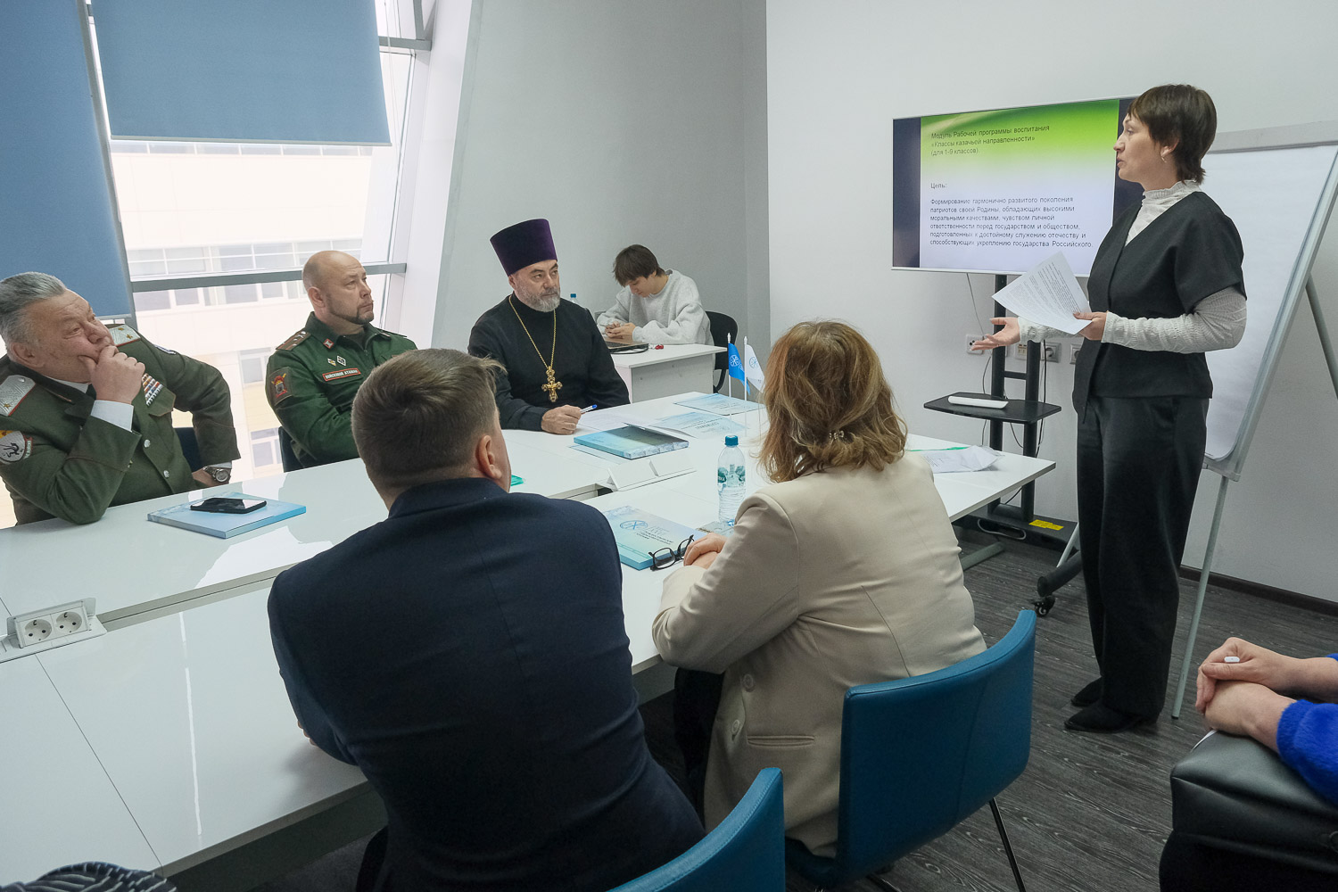 На секции обсуждалось соработничество духовенства и казаков в патриотическом и духовно-нравственном воспитании молодежи. Одной из ключевых тем докладов выступающих, стало казачье направление деятельности в школах края. В частности, об этом рассказали докладчики из Сухобузимской средней школы им. Героя Советского Союза С.Н. Портнягина — директор школы Екатерина Сергеева и учитель начальных классов Светлана Яницкая.