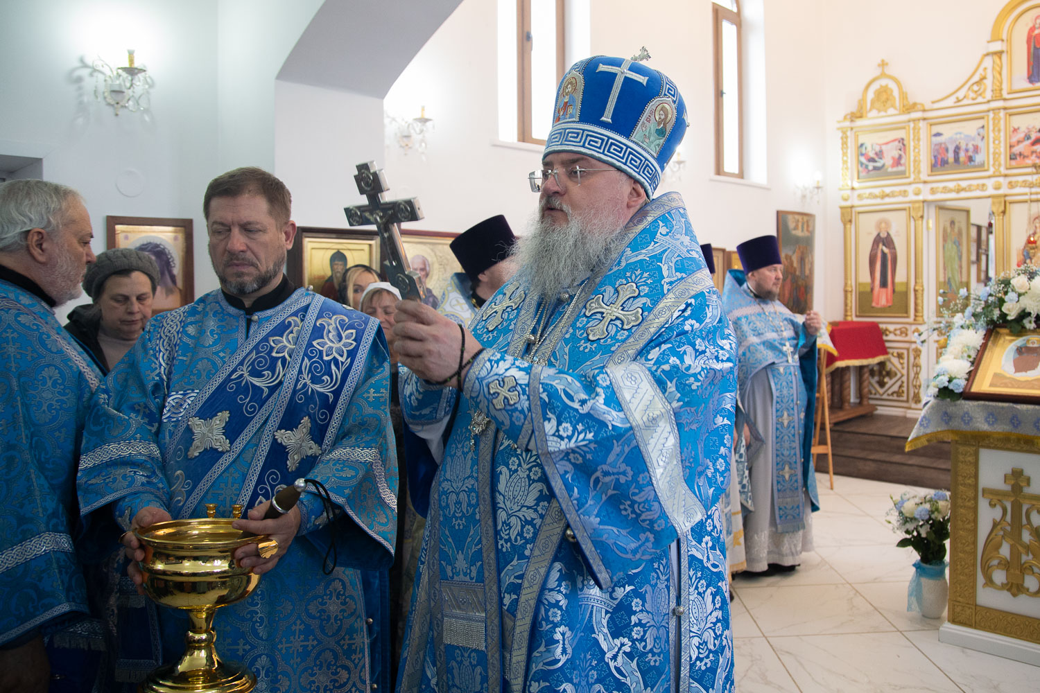Мне очень радостно сегодня совершать вместе с вами молитву в этом новом, но уже намоленном храме, у иконы Матери Божией, которая была написана по благословению преподобного Оптинского старца Амвросия. Раньше я нёс своё служение в граде Козельске, а этот город находится рядом с монастырём Оптина пустынь и женским Шамординским монастырём. Эта икона Божией Матери была благословлена преподобным Амвросием для сестёр новоустроенной женской обители в Шамордино. Поэтому для меня это образ особенно дорог – я молился пред ним, он для меня родной и радостно мне было узнать, что здесь есть храм в честь этой иконы Царицы Небесной и я с радостью сегодня разделяю с вами престольное торжество.