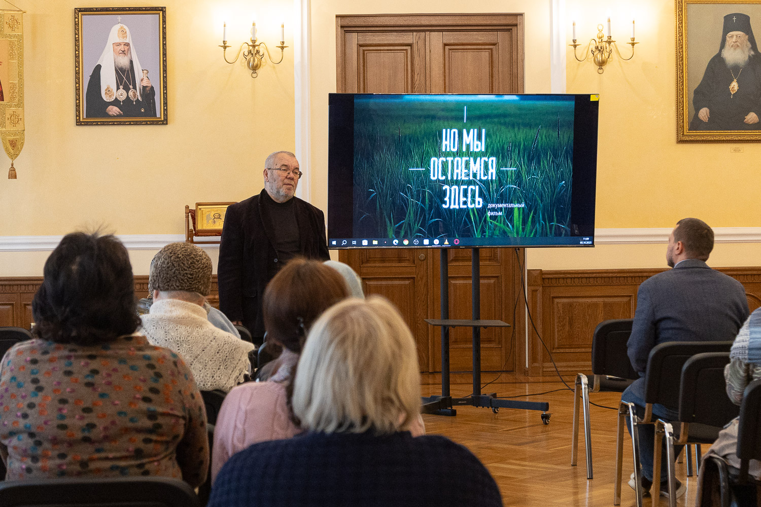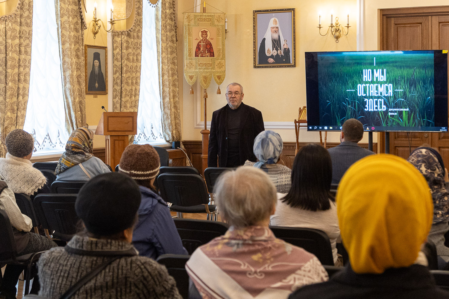 5 октября по благословению митрополита Красноярского и Ачинского Никиты в конференц-зале Архиерейского дома состоялся показ документального фильма «Но мы остаёмся здесь», посвящённого жизни и подвигу епископа Феофана (Еланского).