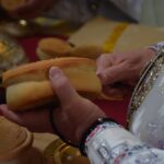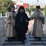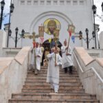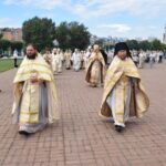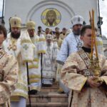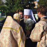 По окончании Литургии архиереи возглавили крестный ход вокруг храма, после чего был совершён чин освящения плодов.