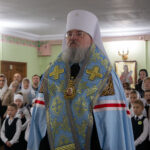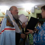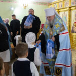 По завершении молебна митрополит Никита обратился к присутствующим с архипастырским словом и вручил памятные подарки гимназистам.