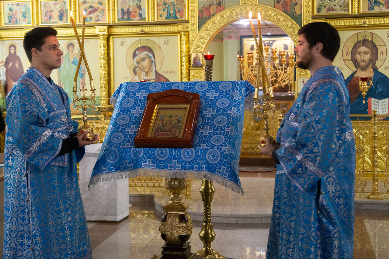 1 сентября, в Седмицу 13-ую по Пятидесятнице, в день почитания Донской иконы Божией Матери митрополит Красноярский и Ачинский Никита совершил молебен на начало нового учебного года в нижнем пределе в честь Царственных Страстотерпцев храма Рождества Христова города Красноярска.
