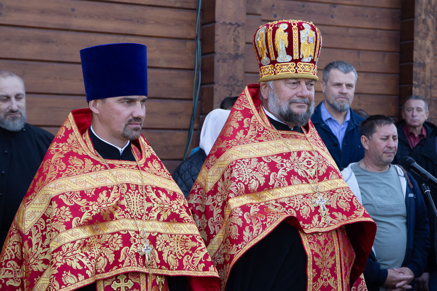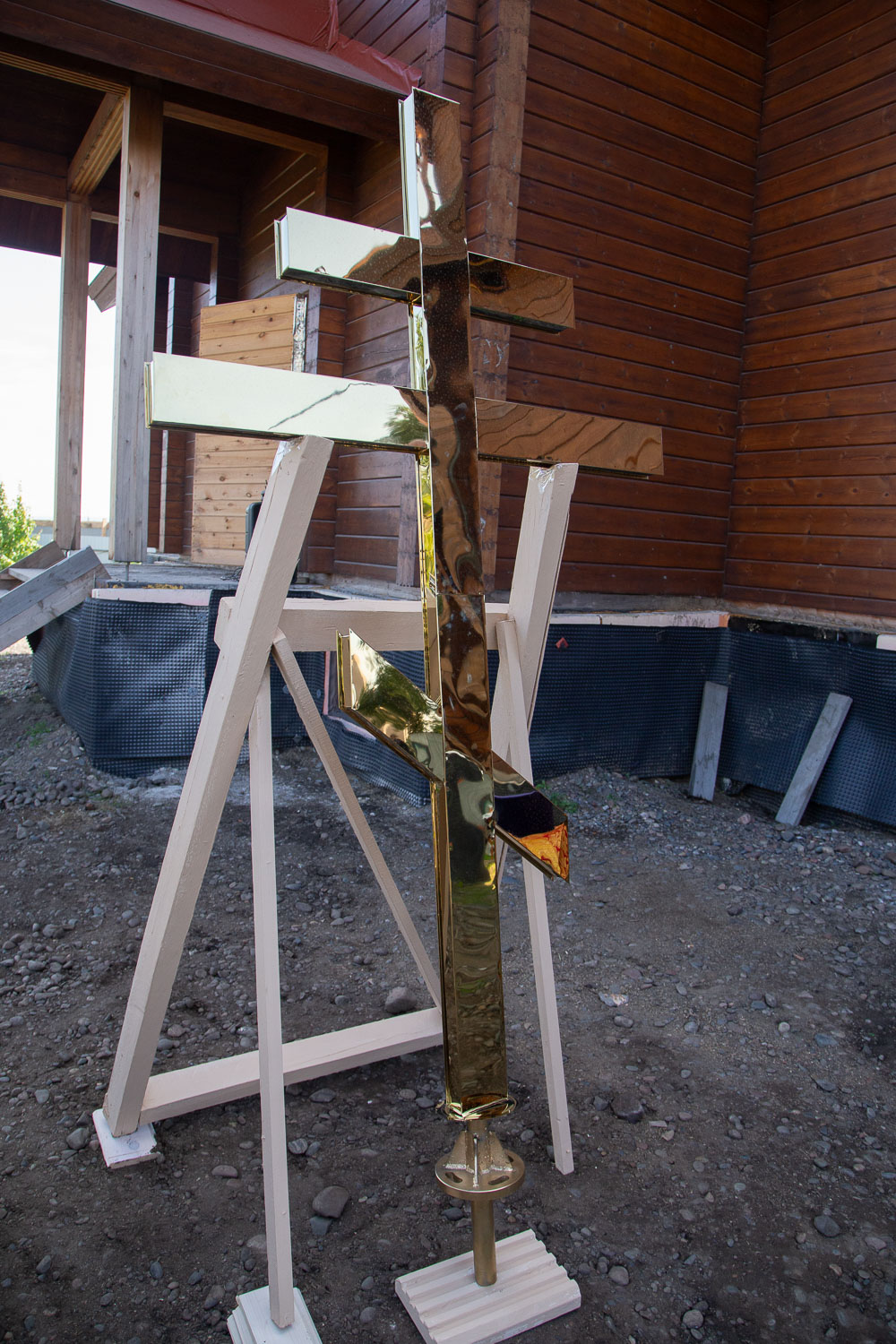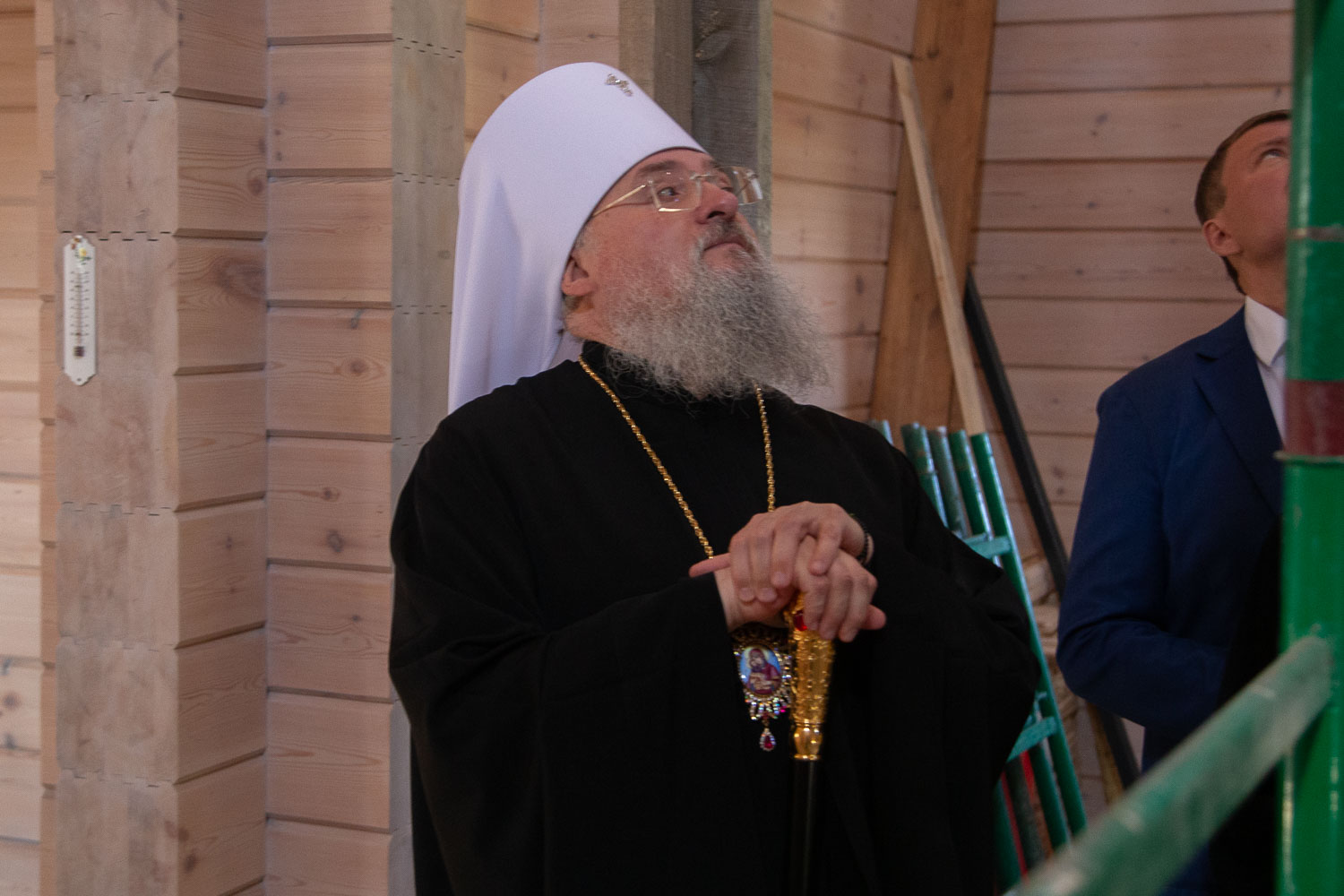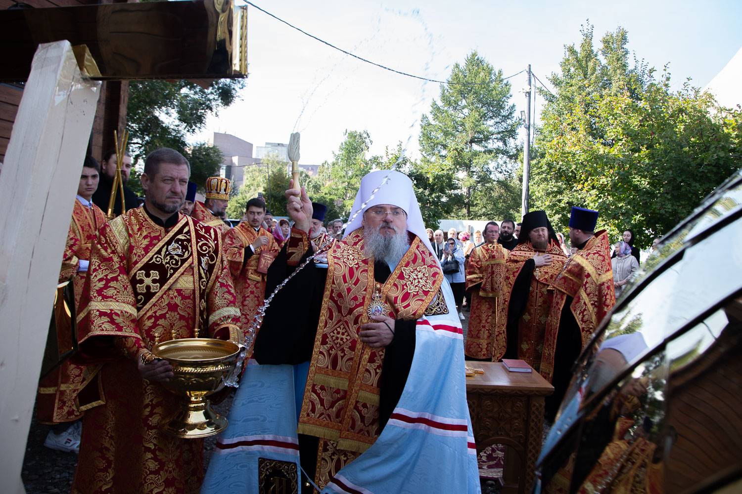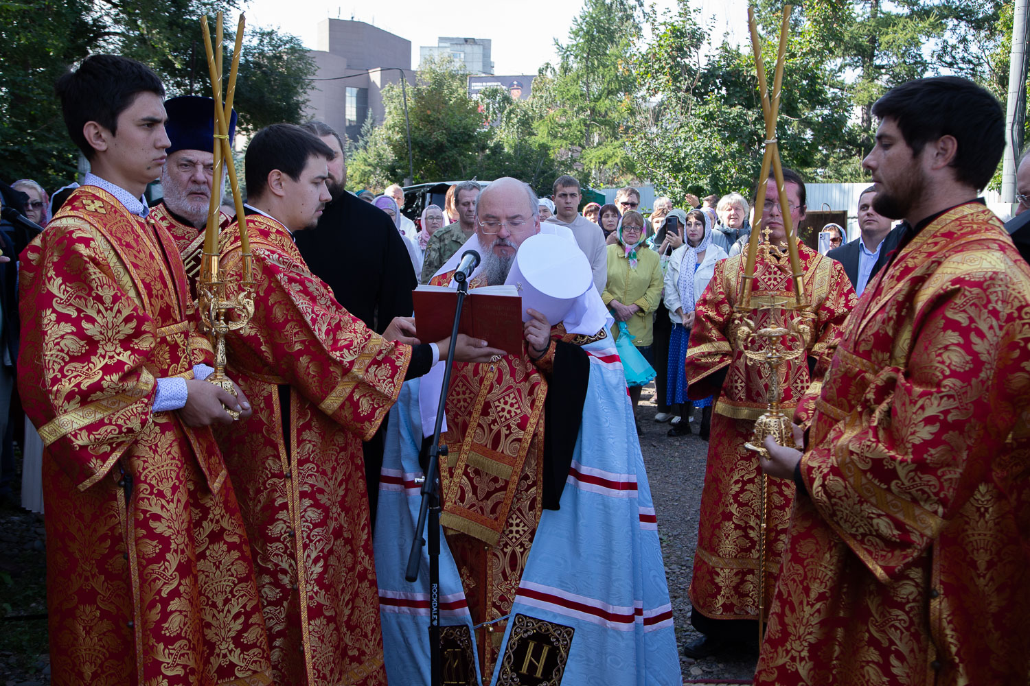 11 сентября на территории строящегося храма Иоакима и Анны на Стрелке митрополит Красноярский и Ачинский Никита совершил чин освящения купола и креста.