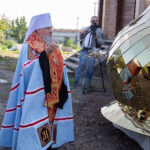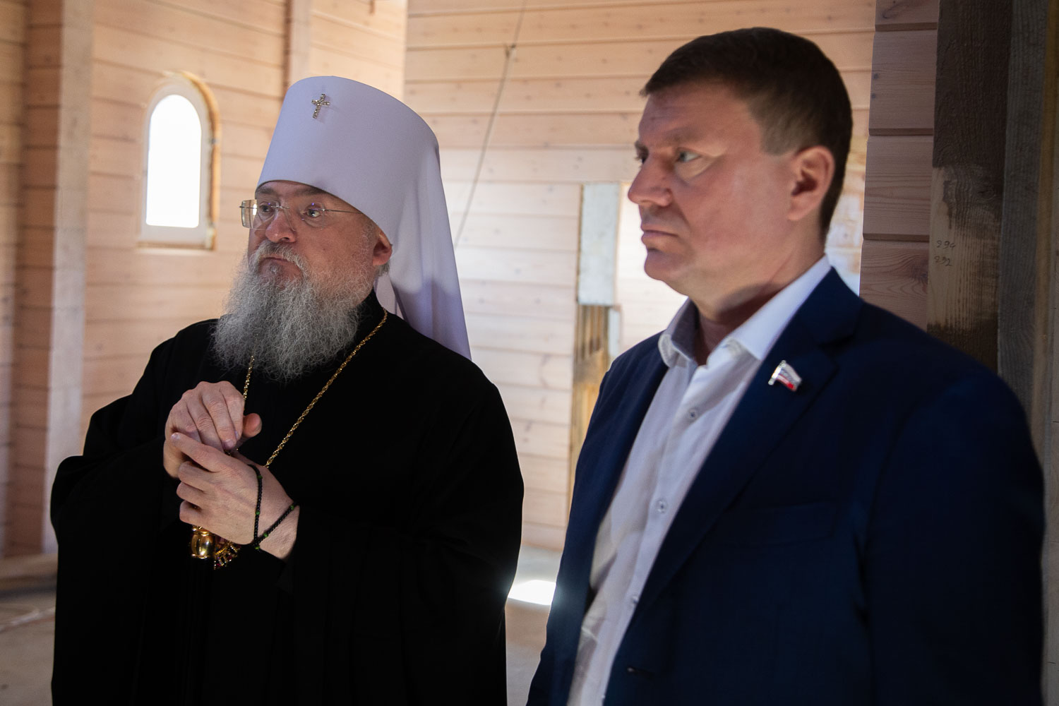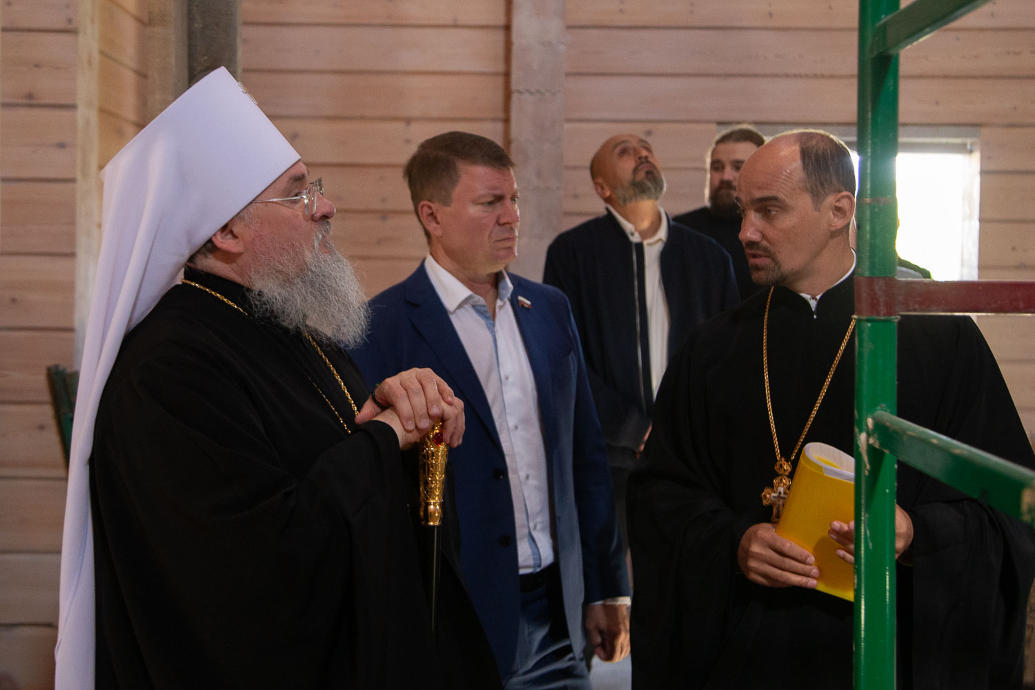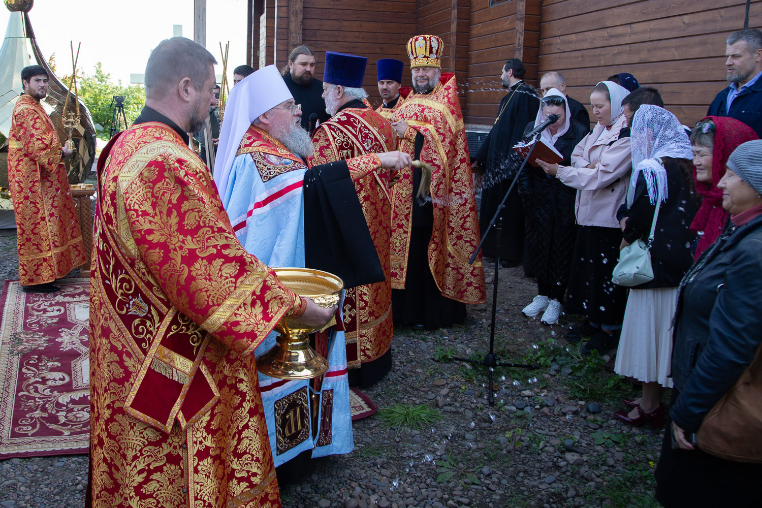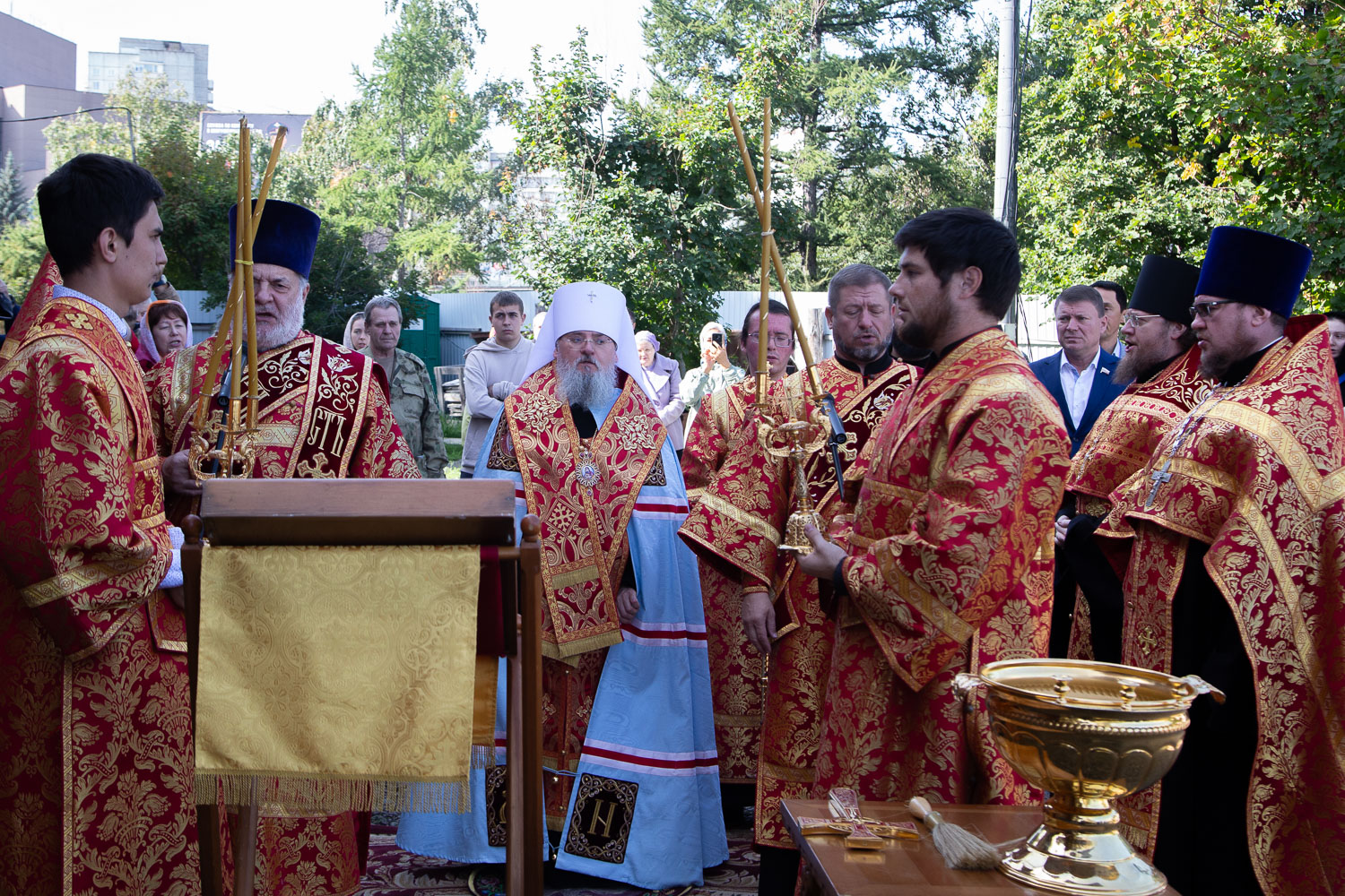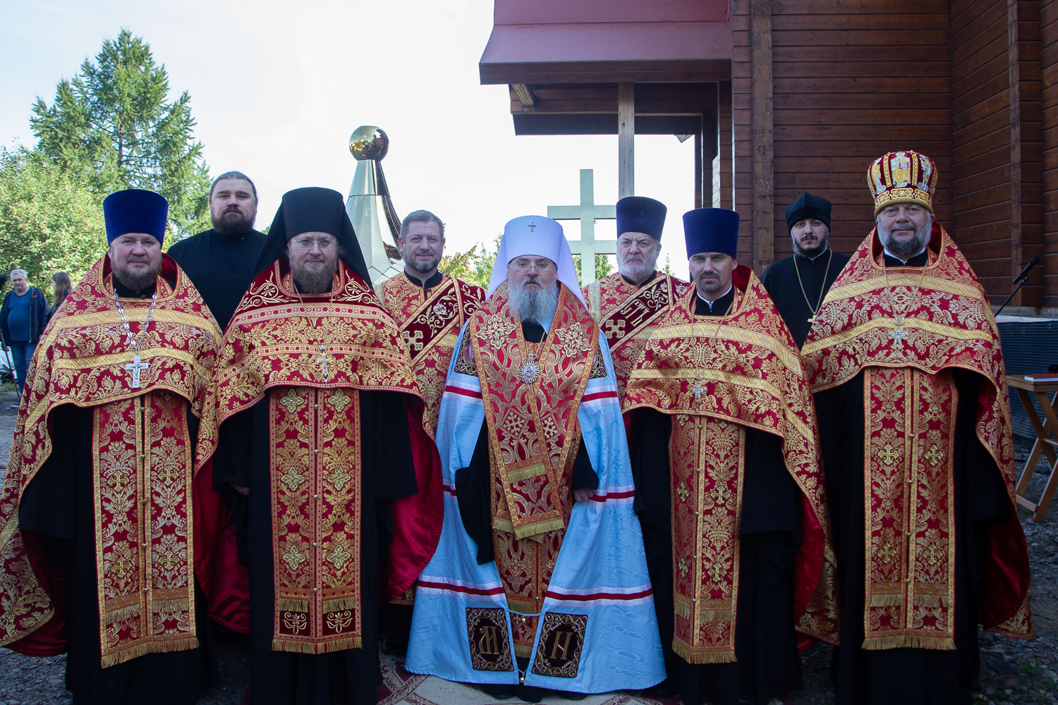 11 сентября на территории строящегося храма Иоакима и Анны на Стрелке митрополит Красноярский и Ачинский Никита совершил чин освящения купола и креста.