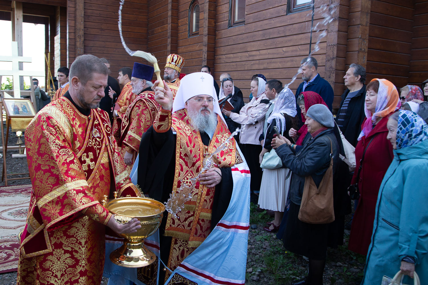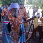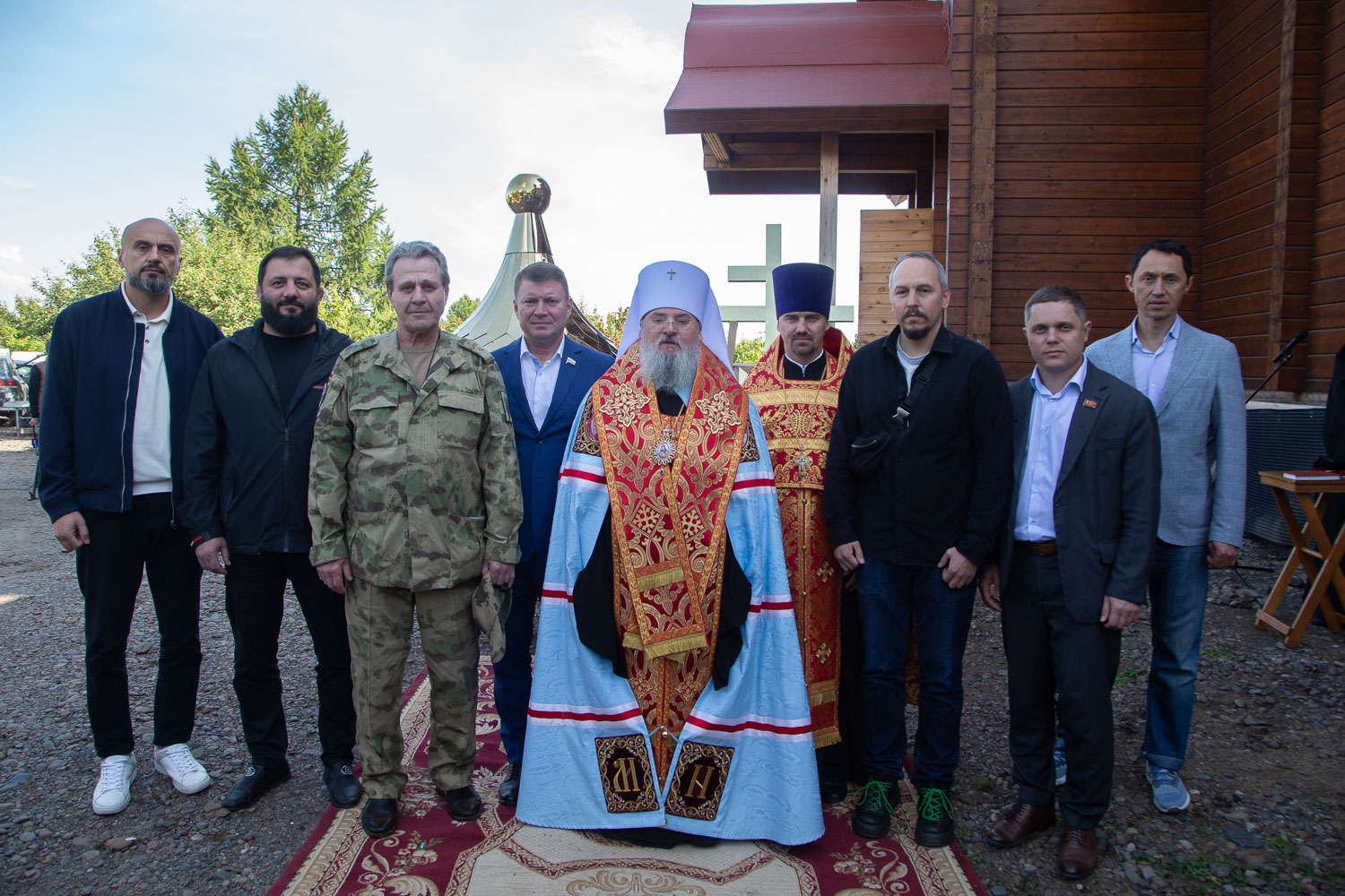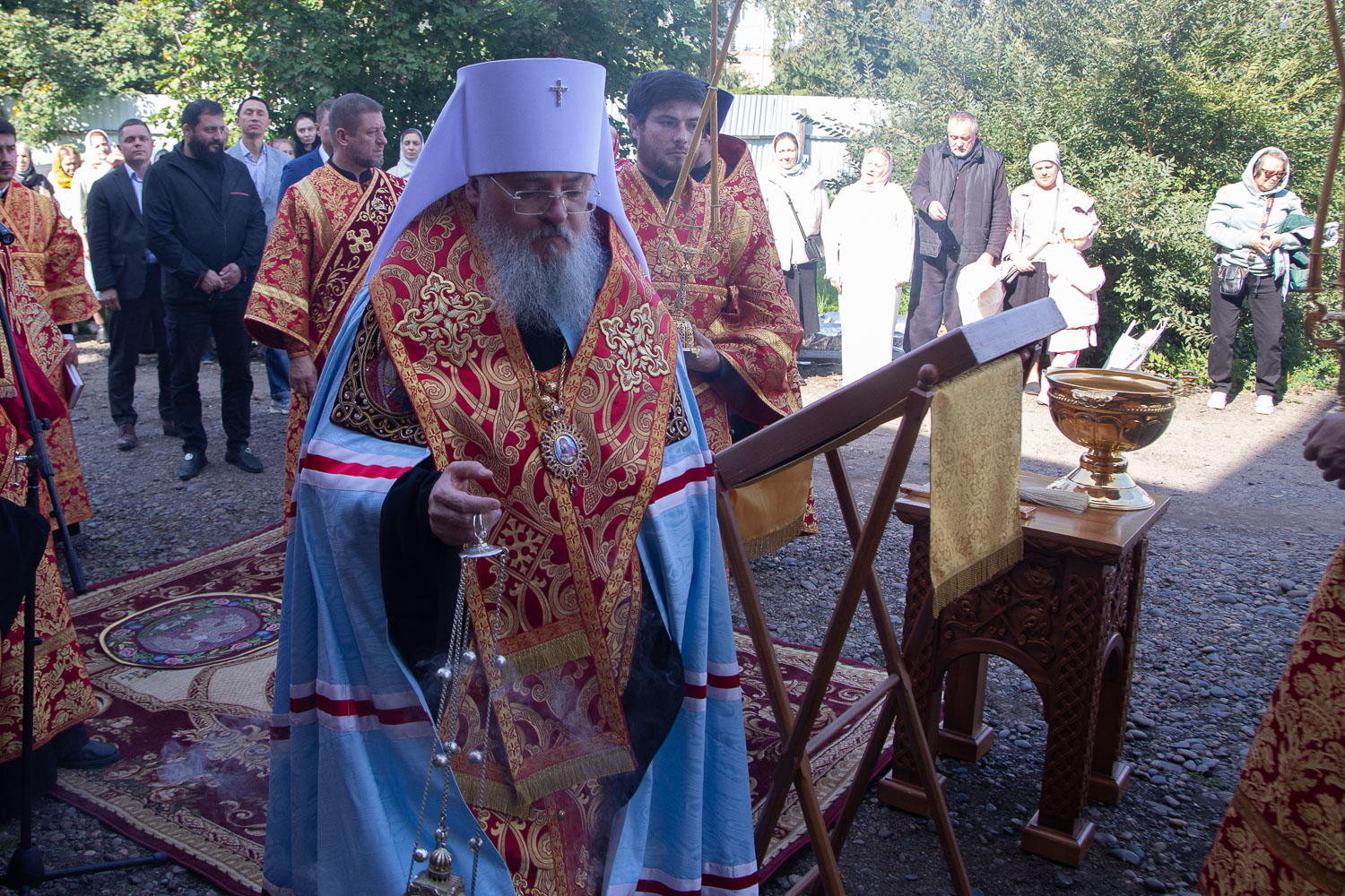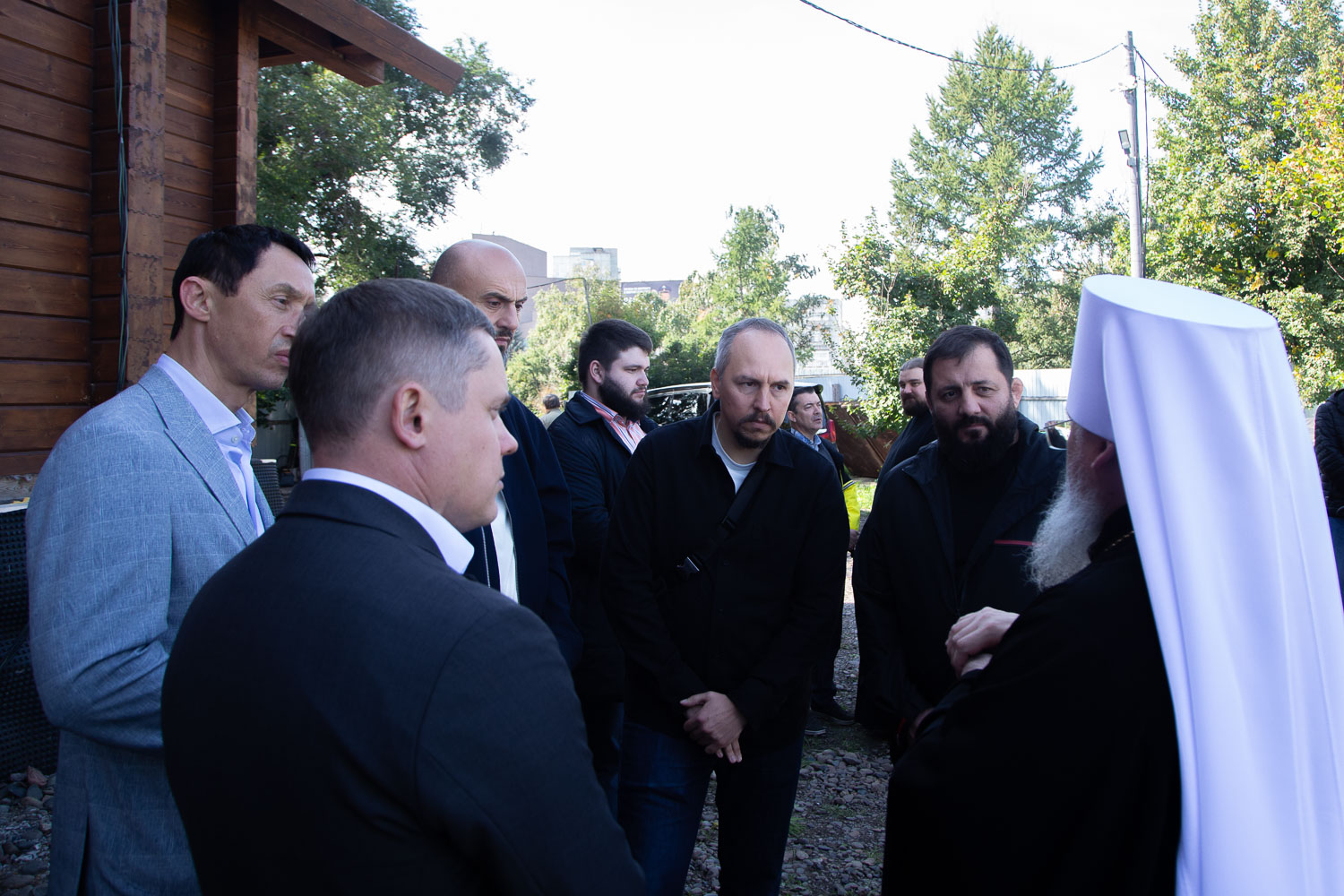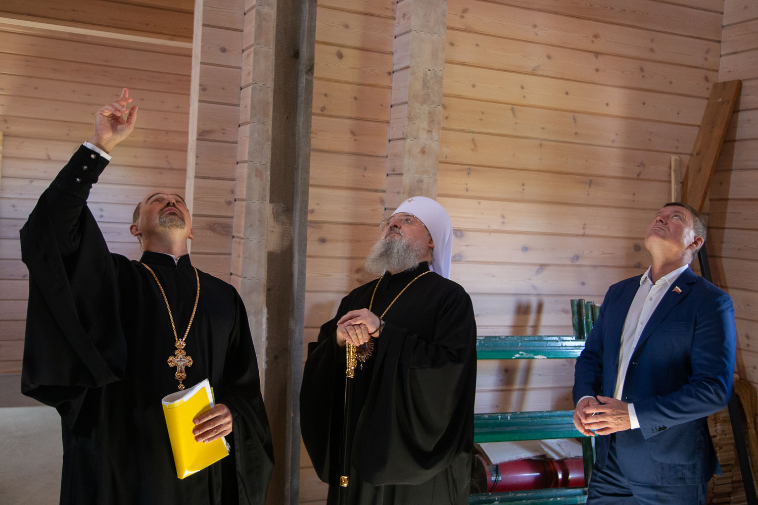 11 сентября на территории строящегося храма Иоакима и Анны на Стрелке митрополит Красноярский и Ачинский Никита совершил чин освящения купола и креста.