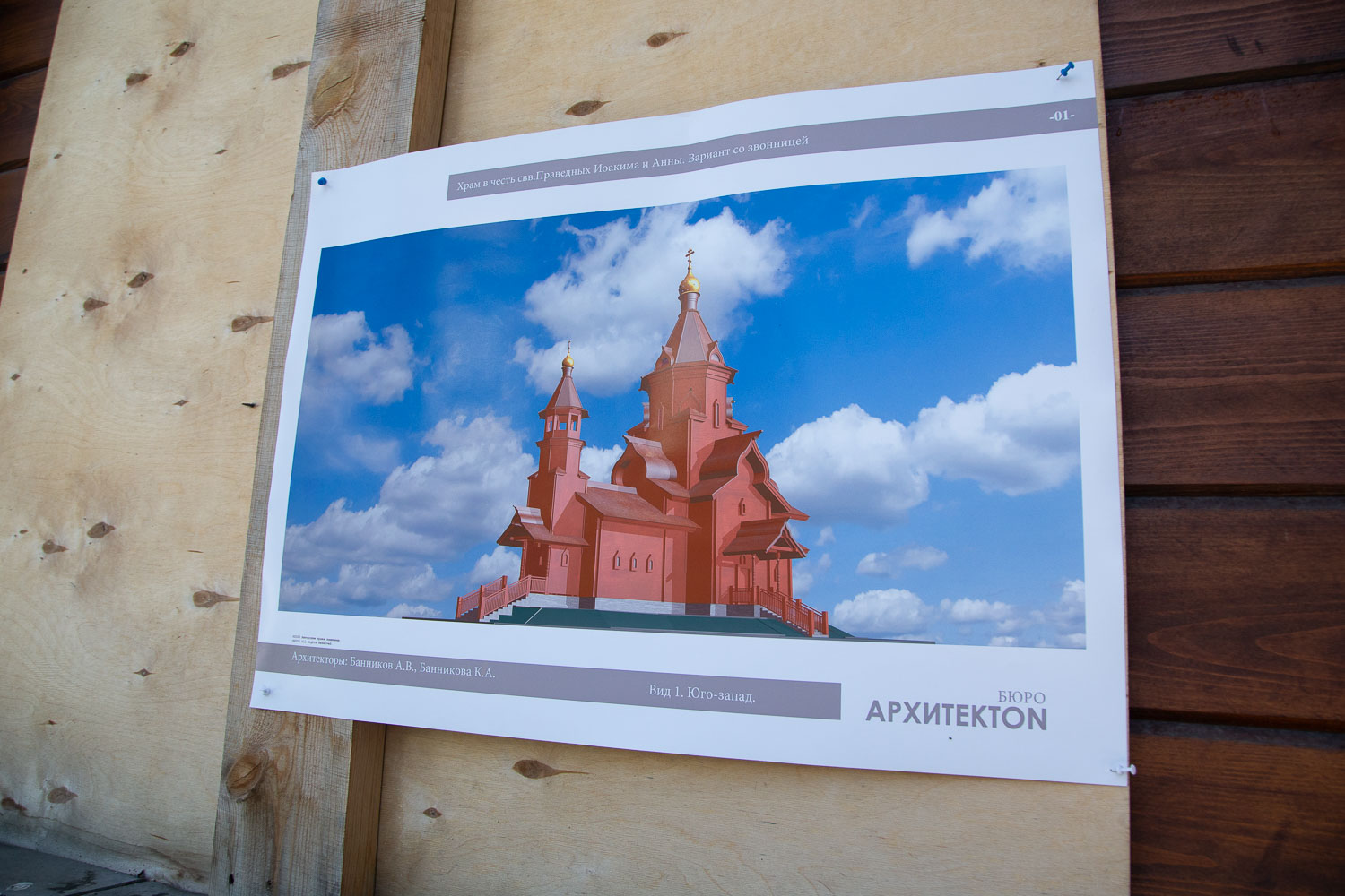 Малый храм в честь родителей Богородицы начали строить в 2022 году — позже было решено, что он станет частью комплекса собора Рождества Пресвятой Богородицы, уничтоженного в 1936 году богоборческими властями. В 2012 году в дни визита Святейшего Патриарха Московского и всея Руси Кирилла в Красноярскую митрополию было дано благословение на воссоздание собора по проекту архитектора 19-го века Константина Тона на Стрелке — строительные работы планируется завершить к 400-летию Красноярска.