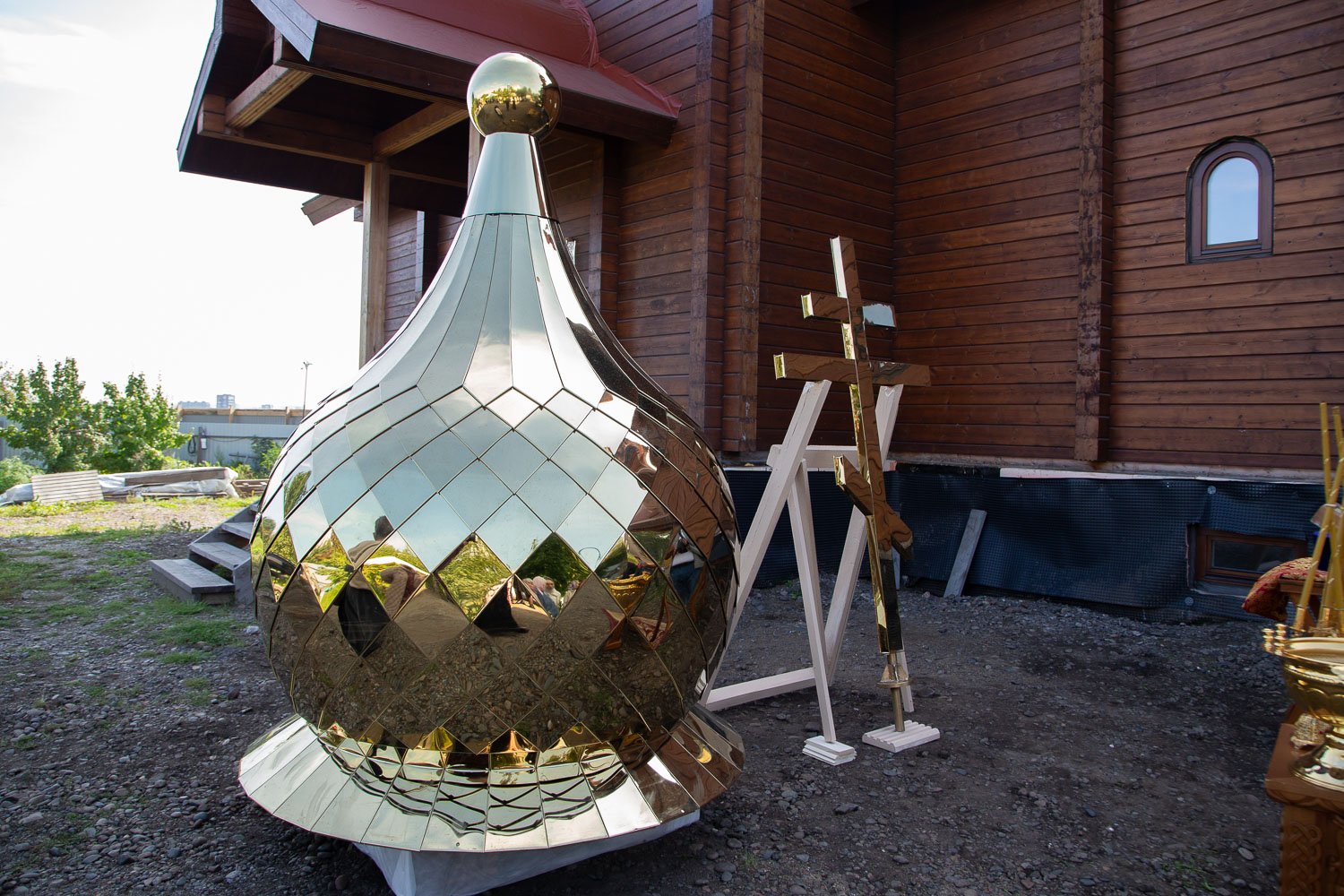 Напомним, конструкции были доставлены на строительную площадку 26 августа. Как сообщил заведующий канцелярией Красноярской епархии, настоятель храмов Иоанна Предтечи и строящегося храма Иоакима и Анны протоиерей Николай Ши-кэ-мин, купол и крест изготовили по заказу в Белгороде.