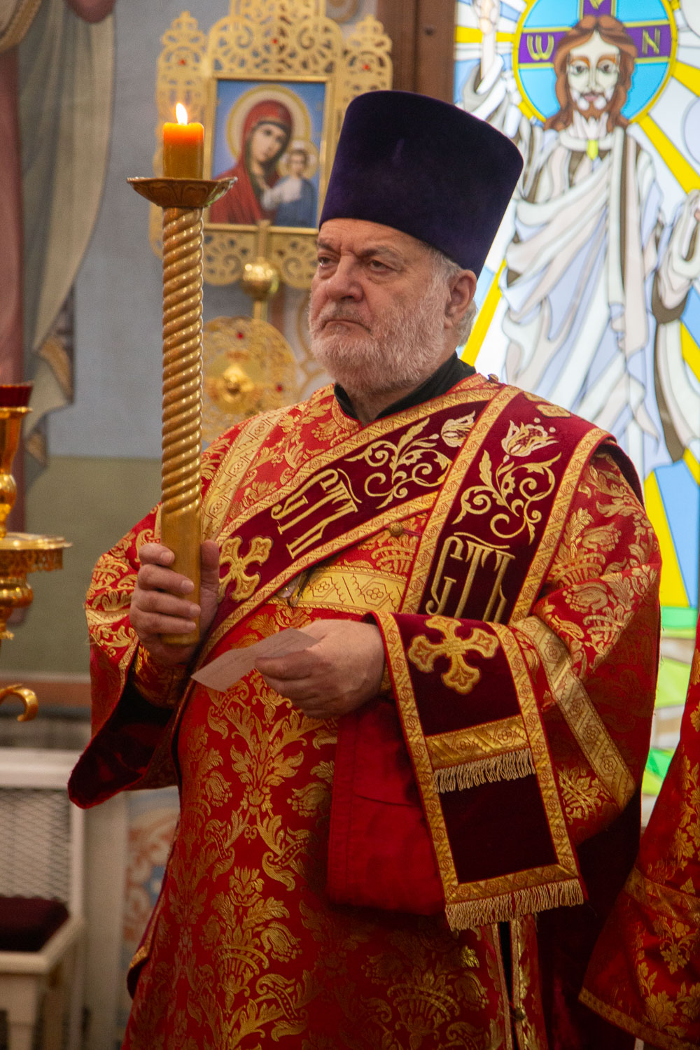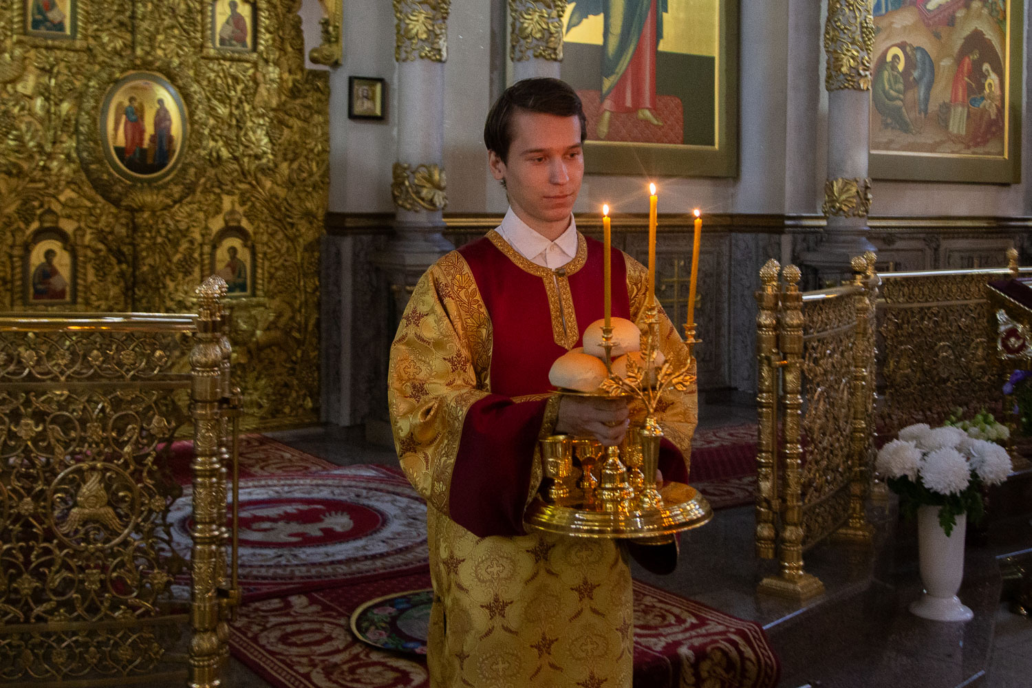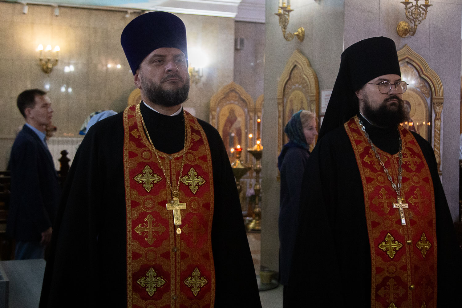 Его Высокопреосвященству сослужили: руководитель административного секретариата Красноярской епархии, настоятель Покровского кафедрального собора города Красноярска митрофорный протоиерей Владимир Дорош; благочинный Правобережного церковного округа города Красноярска, настоятель храма Рождества Христова протоиерей Максим Смоляков; благочинный больничных храмов города Красноярска, настоятель красноярских храмов апостола Андрея Первозванного и великомученика Димитрия Солунского иерей Виталий Вальтер, личный секретарь-референт Главы митрополии, клирик храма Иоанна Предтечи иерей Владимир Лужков.