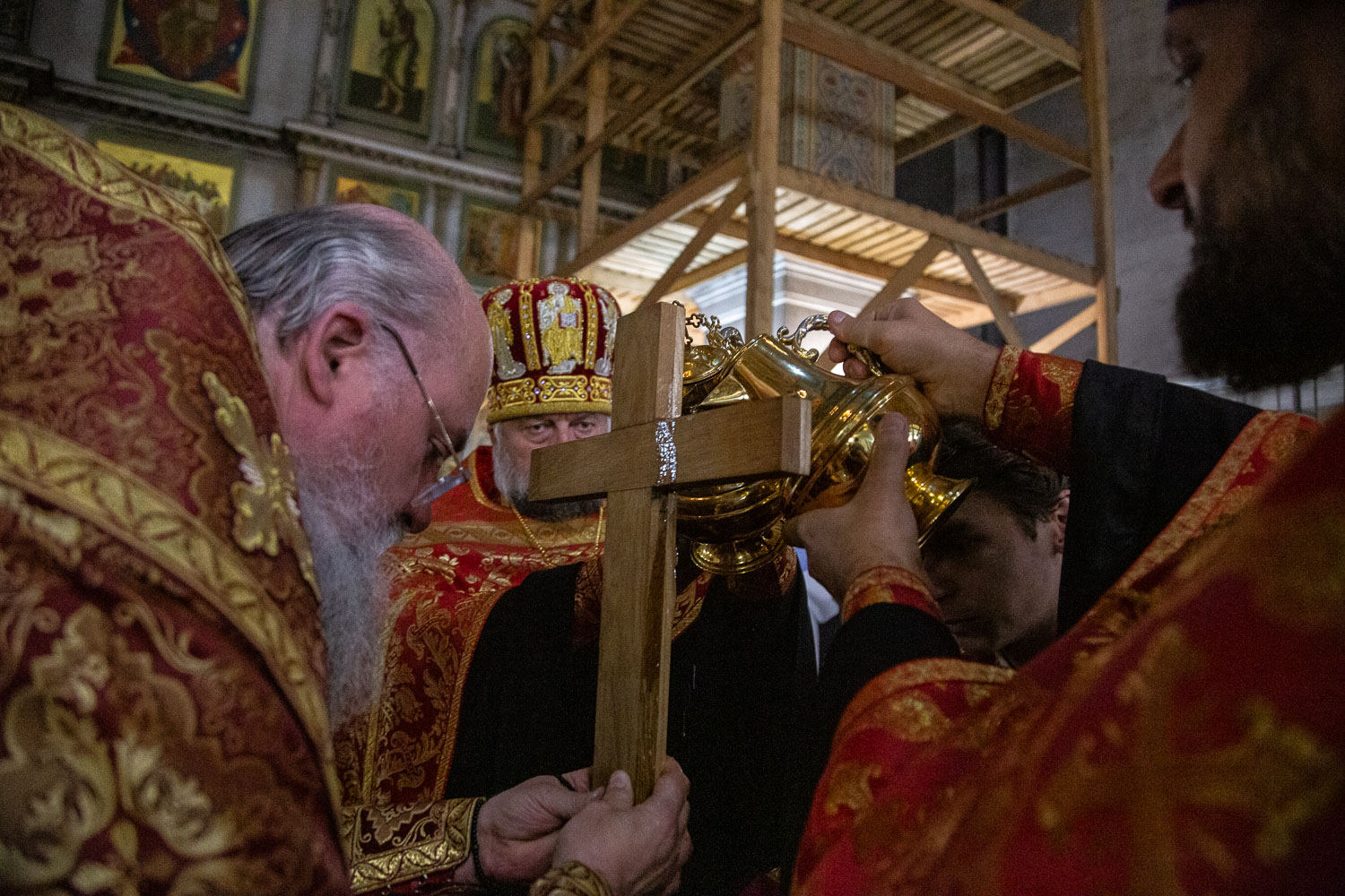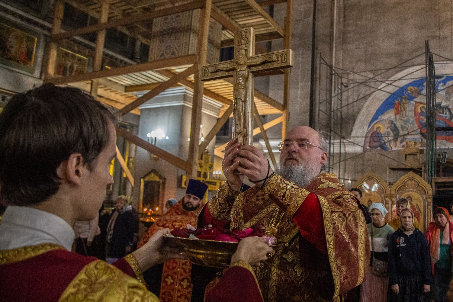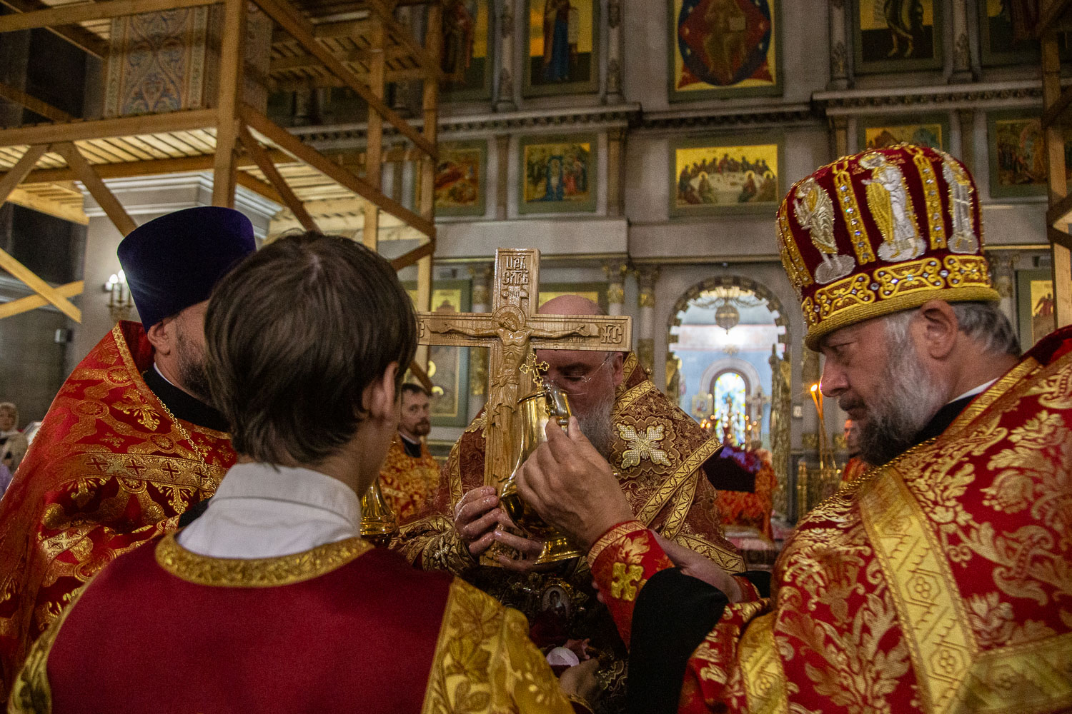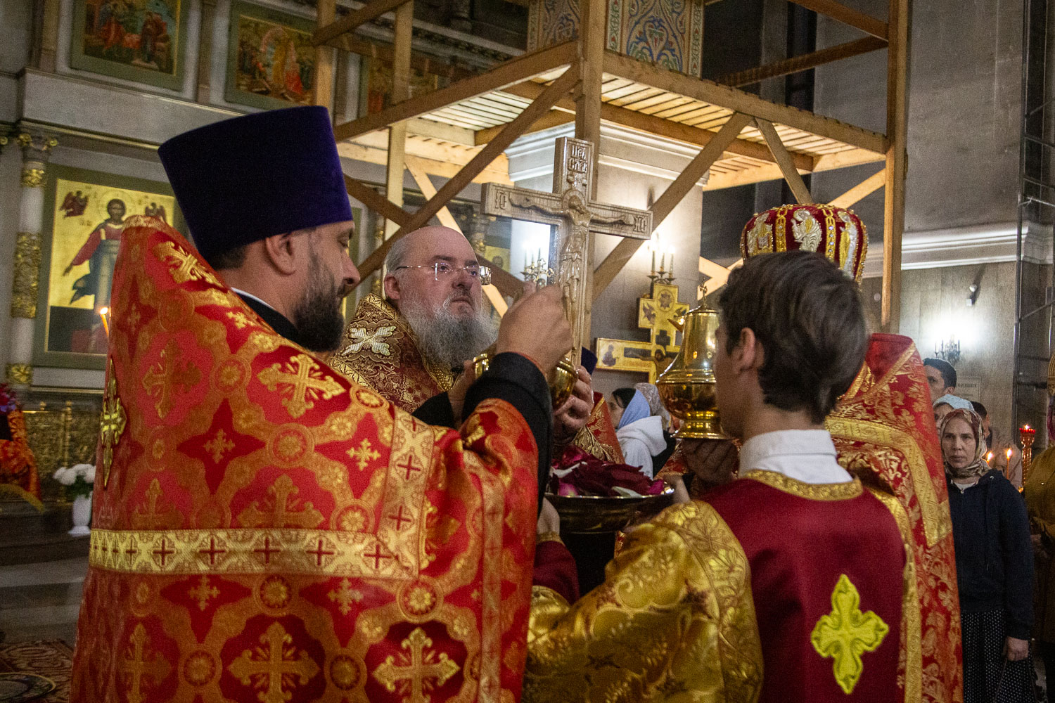 Владыка Никита совершил Чин Воздвижения Креста Господня и елеопомазание молящихся.