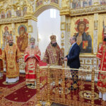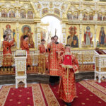 По окончании богослужения был совершён благодарственный молебен и провозглашено многолетие Святейшему Патриарху Московскому и всея Руси Кириллу и епископу Норильскому и Туруханскому Агафангелу, которому 30 сентября исполнилось 50 лет.