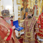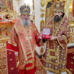 Глава Красноярской митрополии обратился к владыке Агафангелу с поздравительным словом, пожелав крепости сил, неоскудевающей помощи Божией и благодатной мудрости в дальнейших архипастырских трудах на благо Святой Церкви, вручил памятный подарок и медаль священномученика Амфилохия, епископа Красноярского I степени.