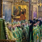 В соборе молились архиереи, настоятельницы женских монастырей, священнослужители, монашествующие и паломники, прибывшие на торжества в Троице-Сергиеву лавру.