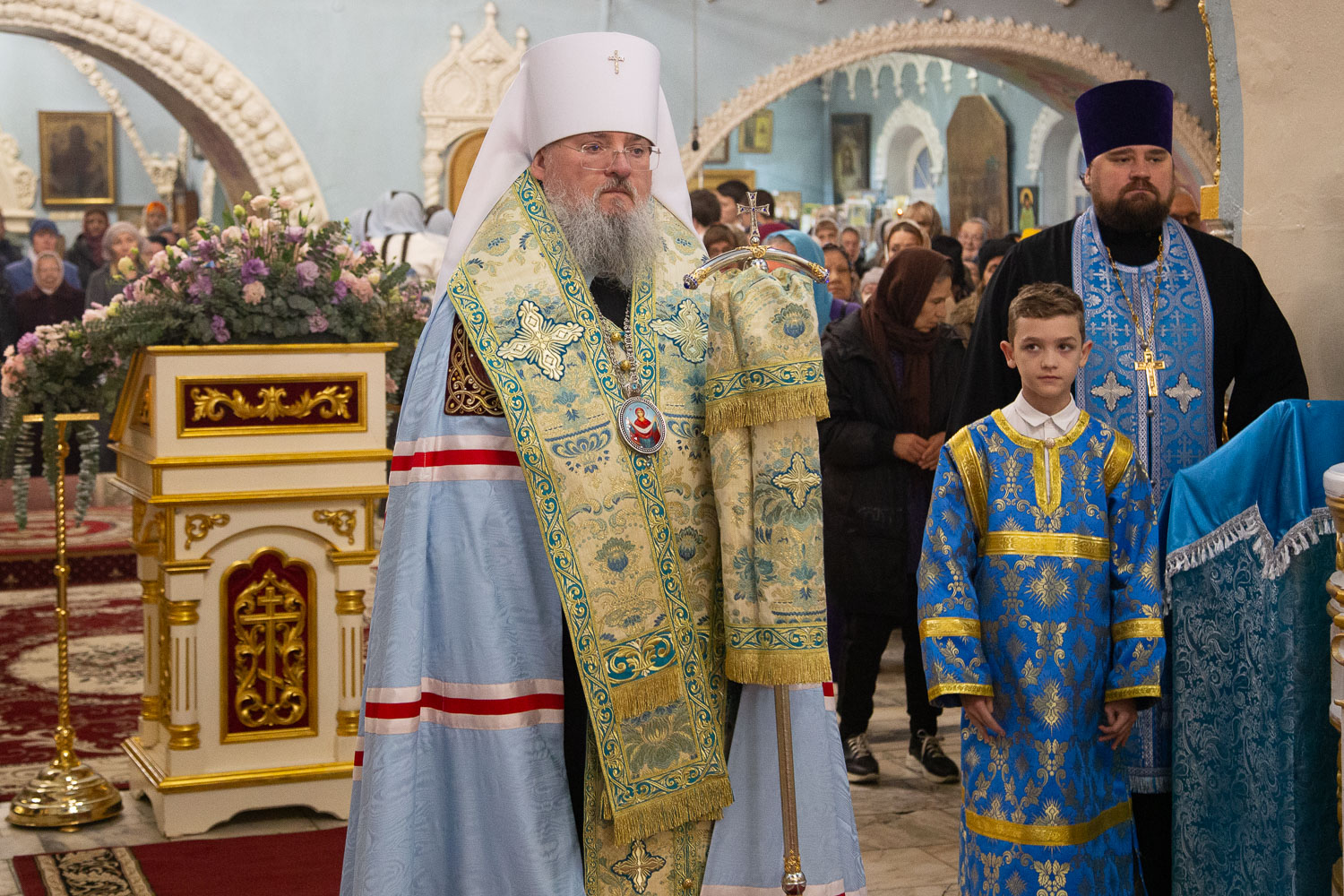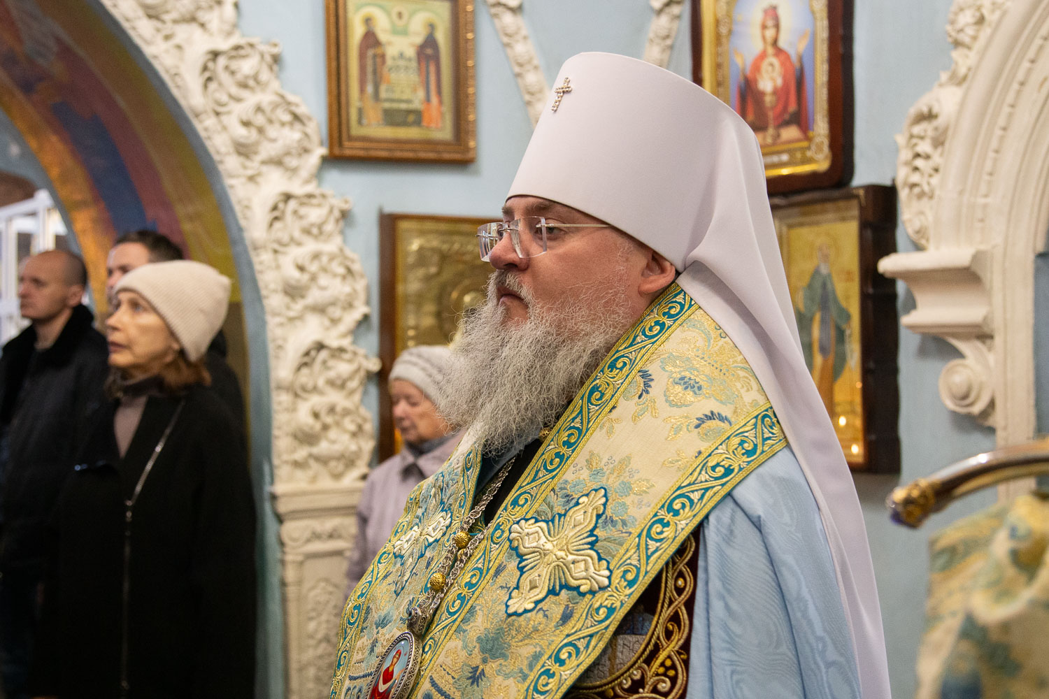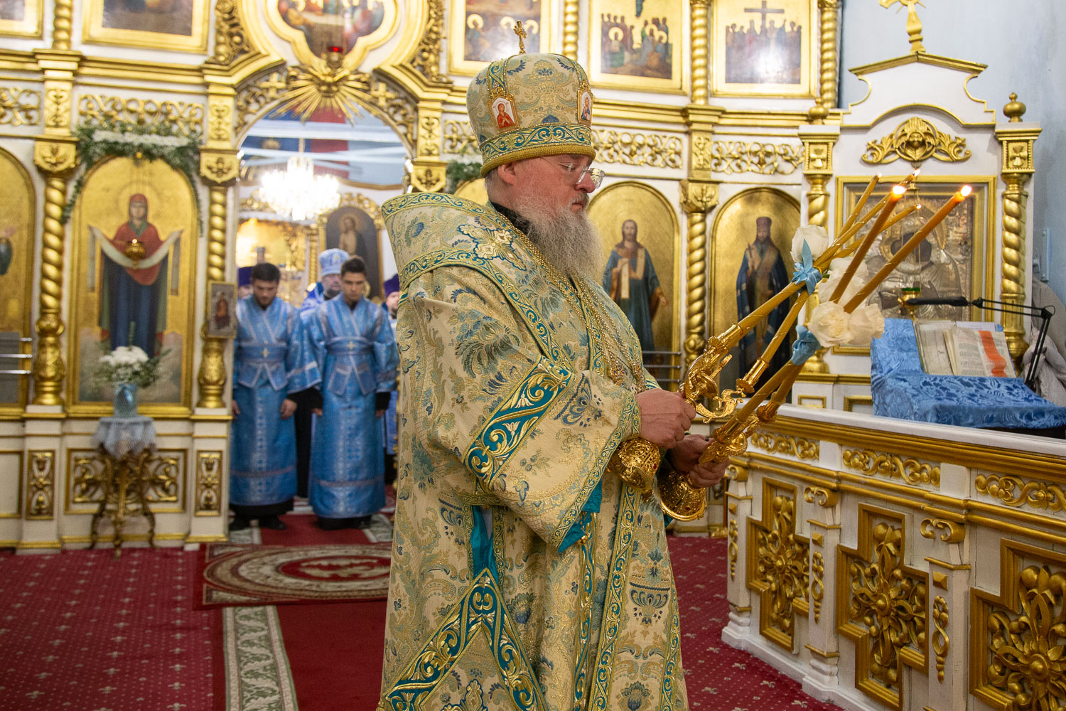 Его Высокопреосвященству сослужили: руководитель административного секретариата Красноярской епархии, настоятель Покровского кафедрального собора города Красноярска протоиерей Владимир Дорош; заведующий канцелярией Красноярской епархии, настоятель храма Иоанна Предтечи протоиерей Николай Ши-кэ-мин; благочинный больничных храмов города Красноярска, настоятель красноярских храмов апостола Андрея Первозванного и великомученика Димитрия Солунского иерей Виталий Вальтер; личный секретарь-референт главы Красноярской митрополии, штатный клирик храма Иоанна Предтечи города Красноярска иерей Владимир Лужков.