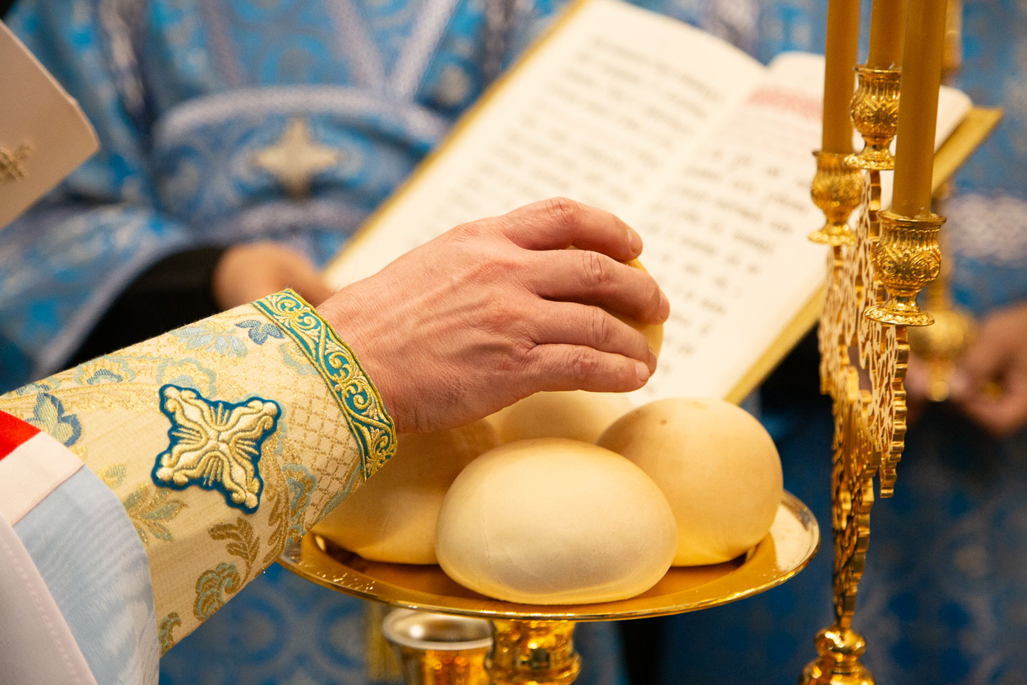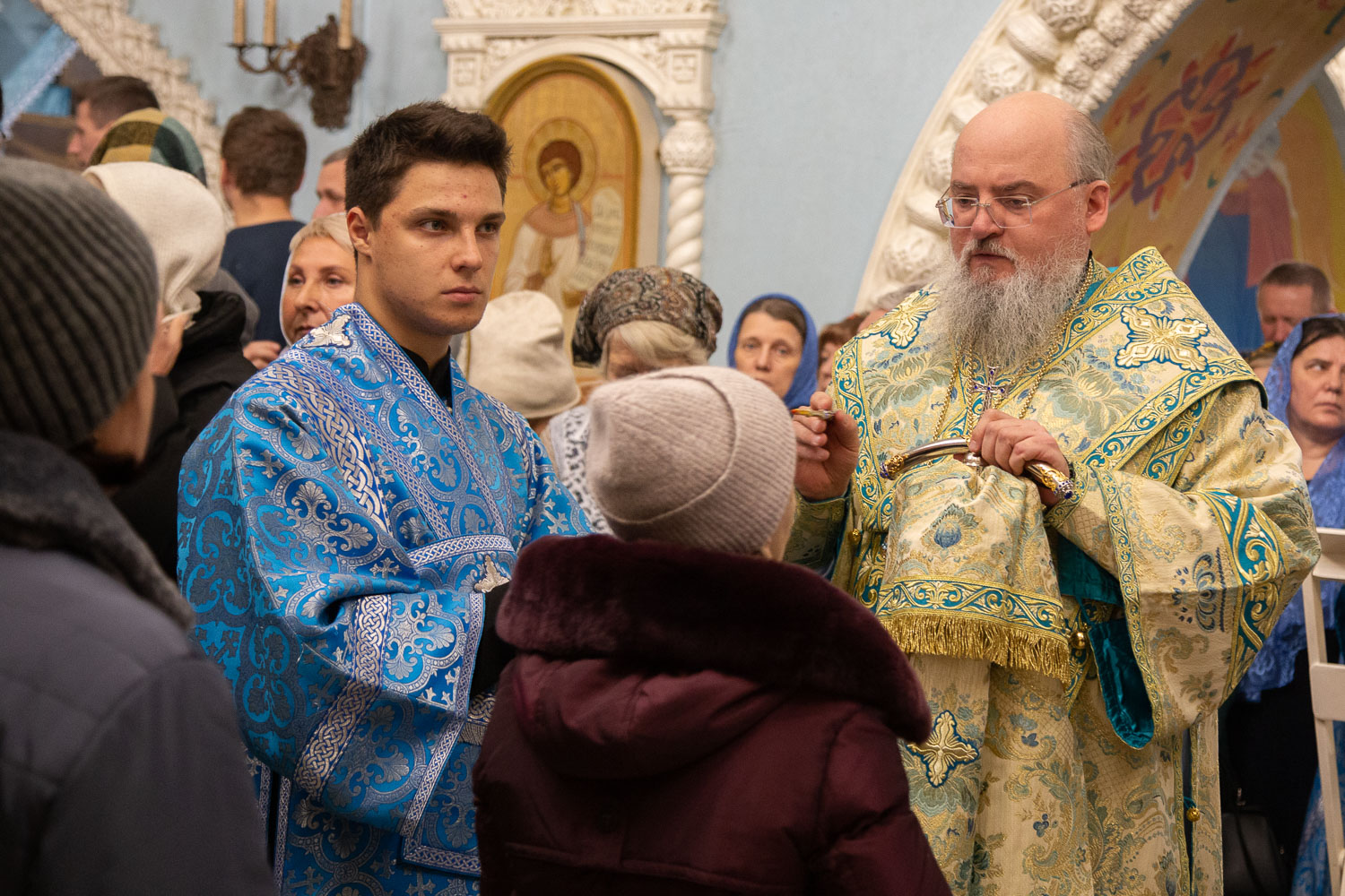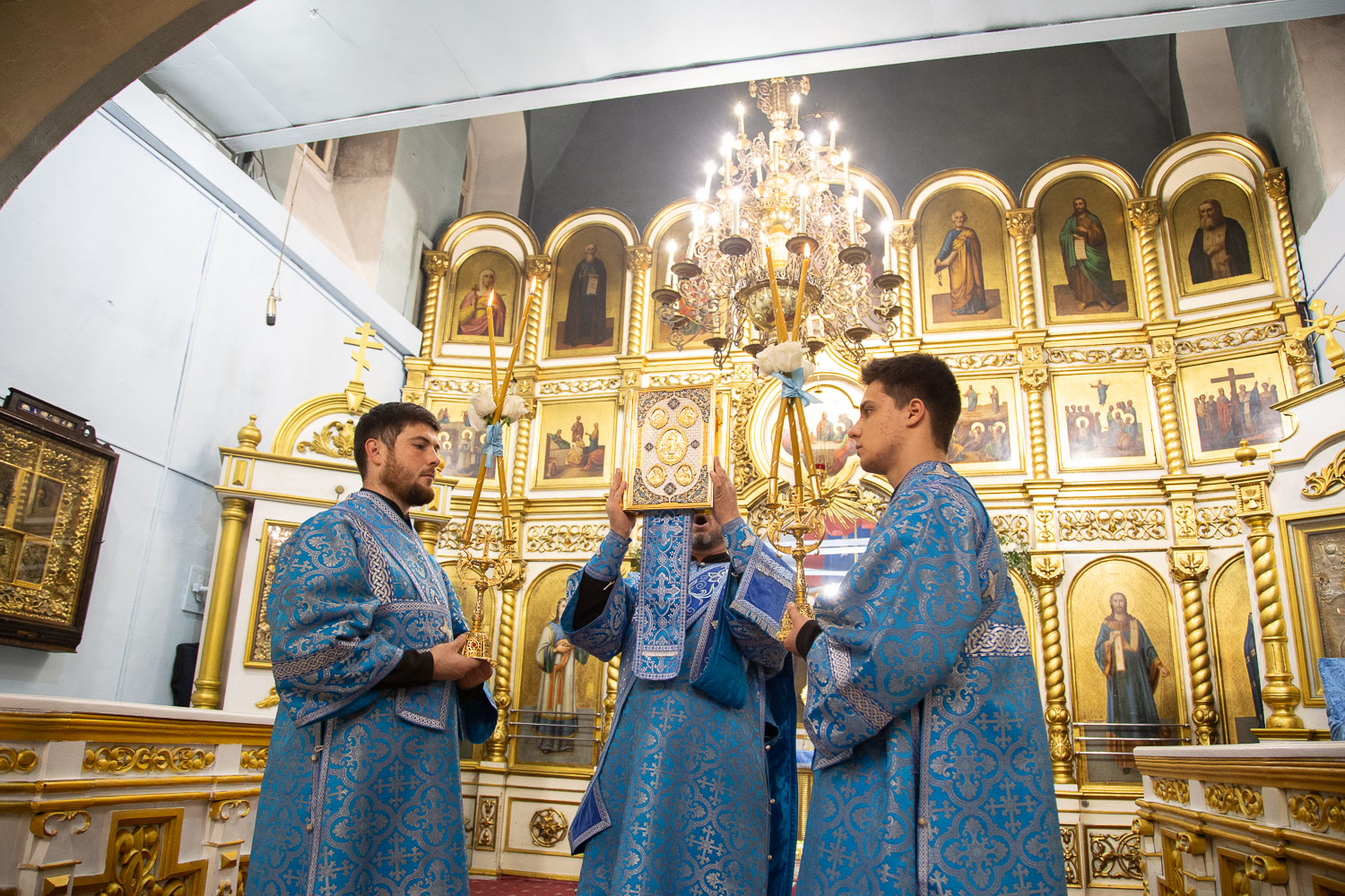 Его Высокопреосвященству сослужили: руководитель административного секретариата Красноярской епархии, настоятель Покровского кафедрального собора города Красноярска протоиерей Владимир Дорош; заведующий канцелярией Красноярской епархии, настоятель храма Иоанна Предтечи протоиерей Николай Ши-кэ-мин; благочинный больничных храмов города Красноярска, настоятель красноярских храмов апостола Андрея Первозванного и великомученика Димитрия Солунского иерей Виталий Вальтер; личный секретарь-референт главы Красноярской митрополии, штатный клирик храма Иоанна Предтечи города Красноярска иерей Владимир Лужков.
