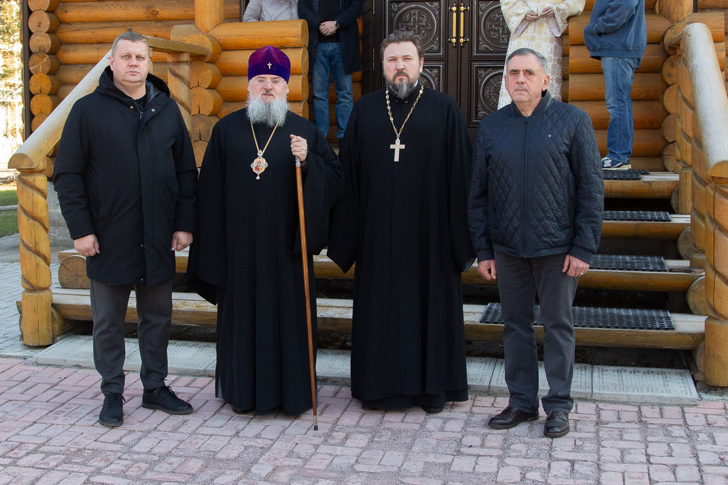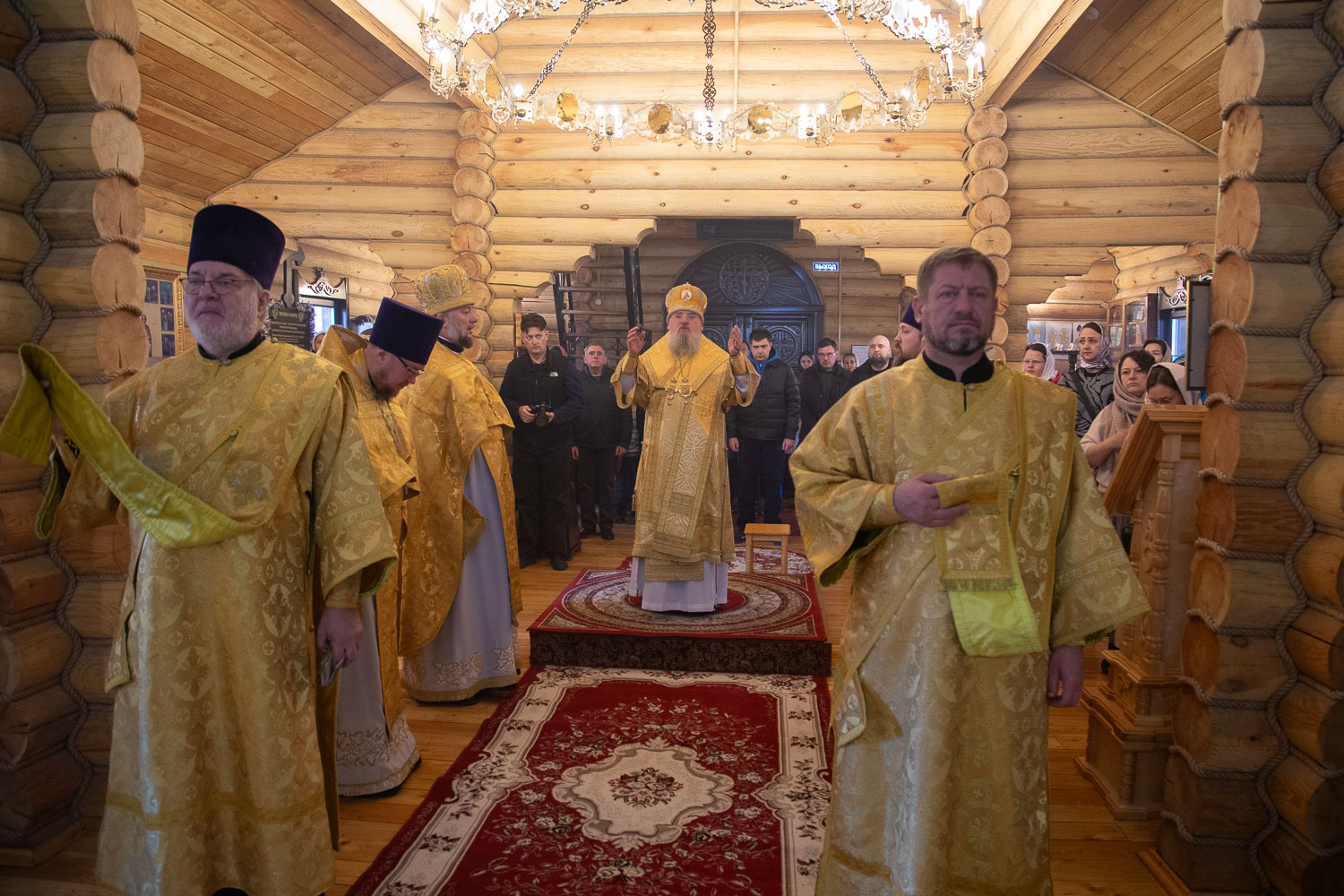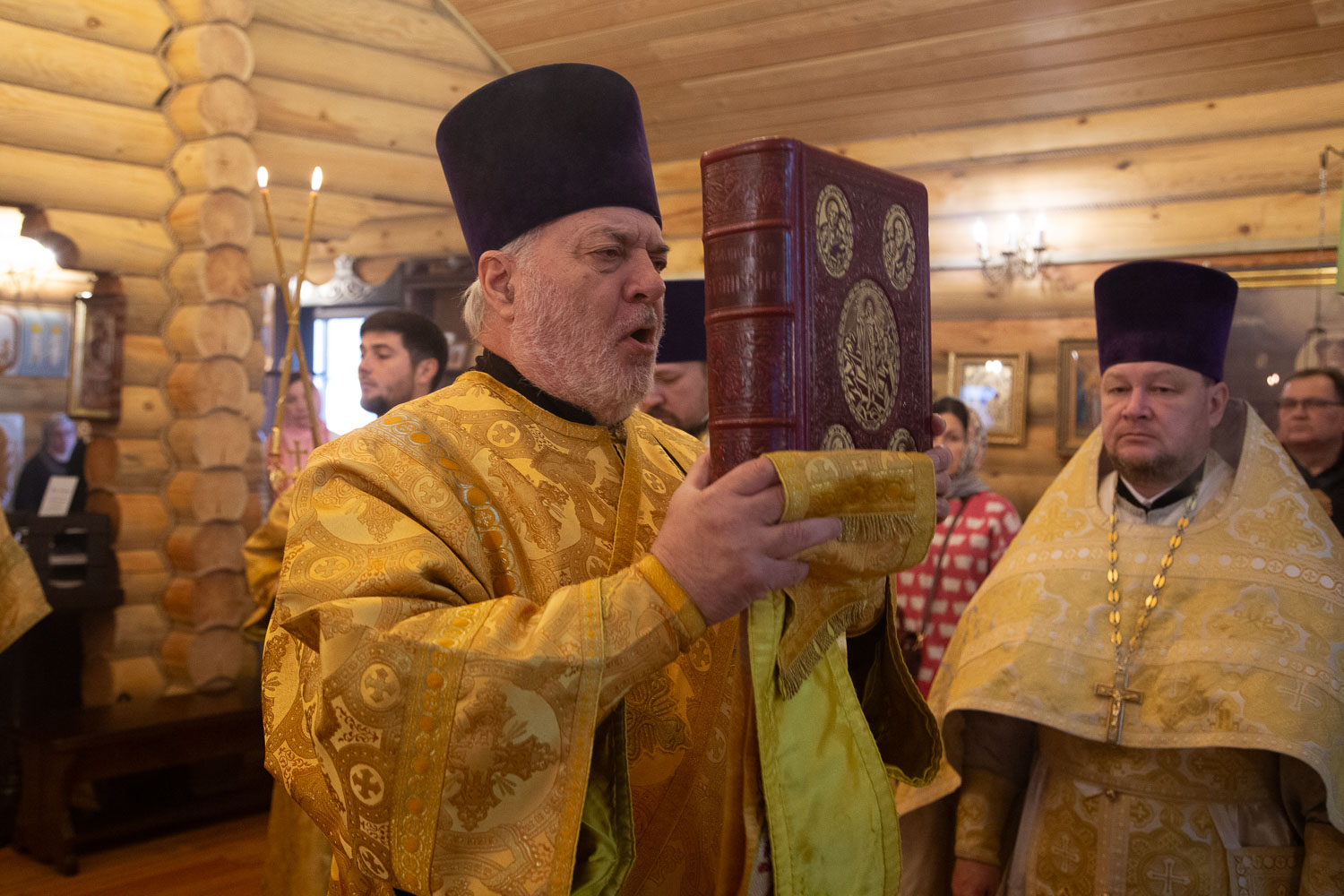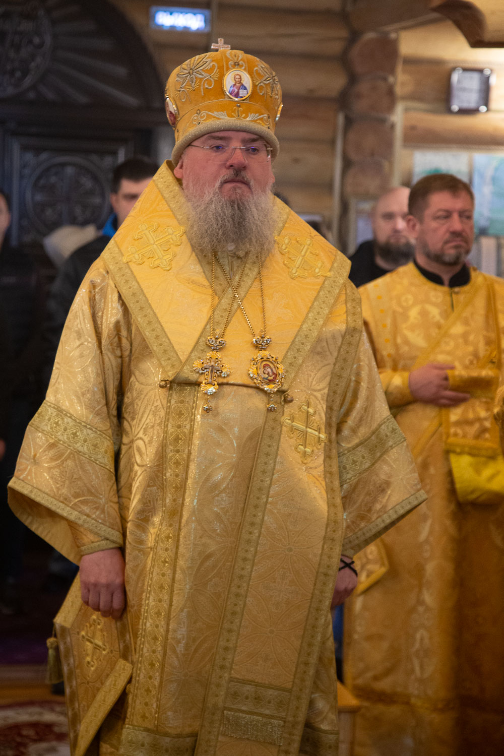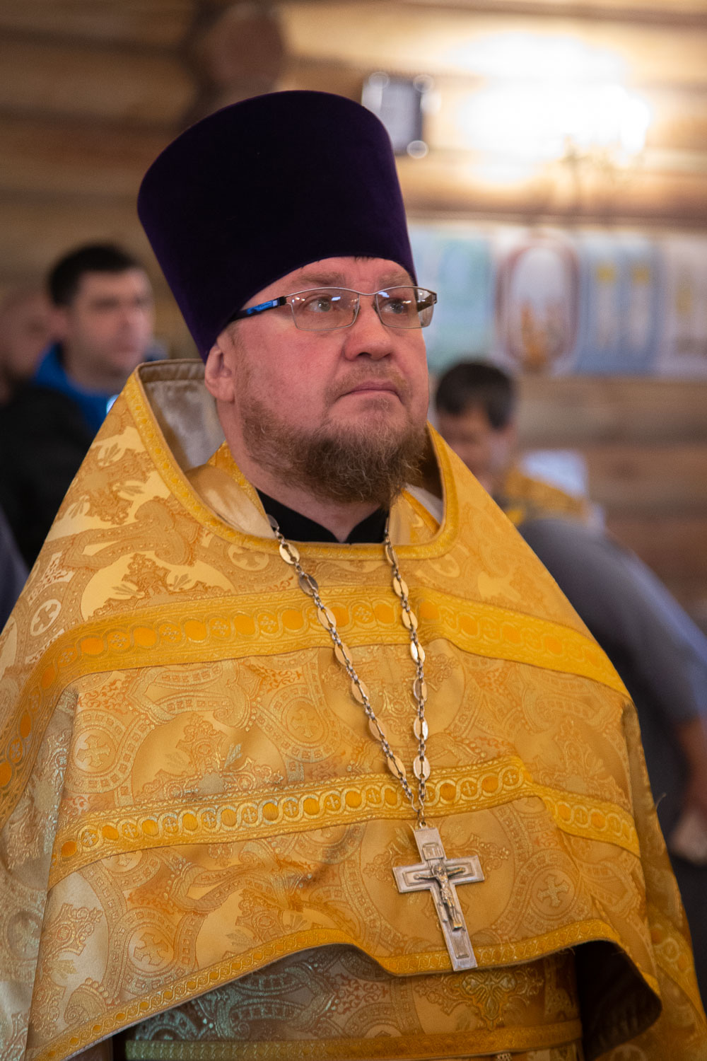 Его Высокопреосвященству сослужили: руководитель административного секретариата Красноярской епархии, настоятель Покровского кафедрального собора города Красноярска протоиерей Владимир Дорош; настоятель красноярских храмов апостола Андрея Первозванного и великомученика Димитрия Солунского иерей Виталий Вальтер; благочинный тюремных храмов Красноярской митрополии, настоятель храма священномученика Амфилохия иерей Родион Петриков; личный секретарь-референт главы Красноярской митрополии, штатный клирик храма Иоанна Предтечи города Красноярска иерей Владимир Лужков.