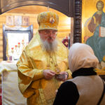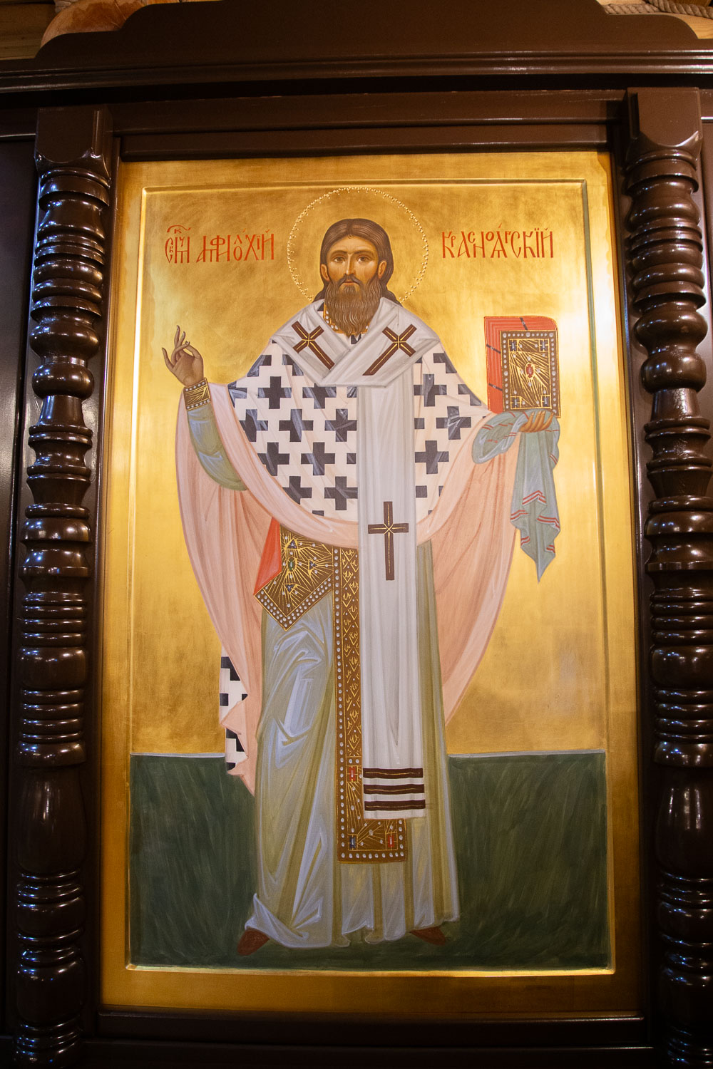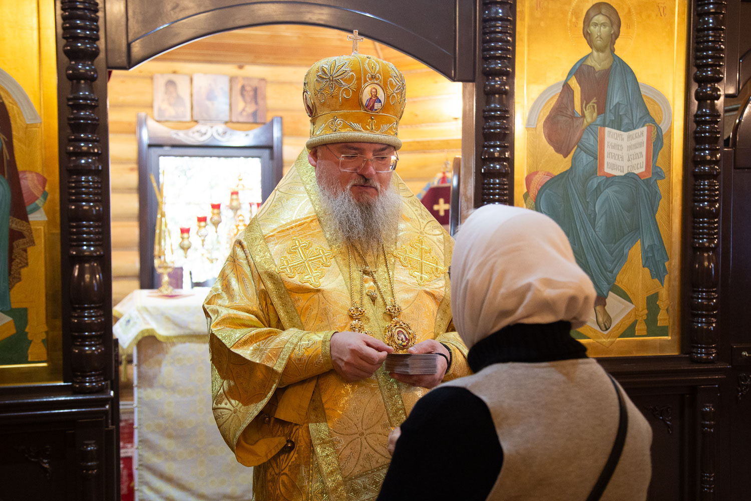 По окончании богослужения митрополит Никита обратился к собравшимся с архипастырским словом и подарил прихожанам иконки священномученика Амфилохия.