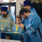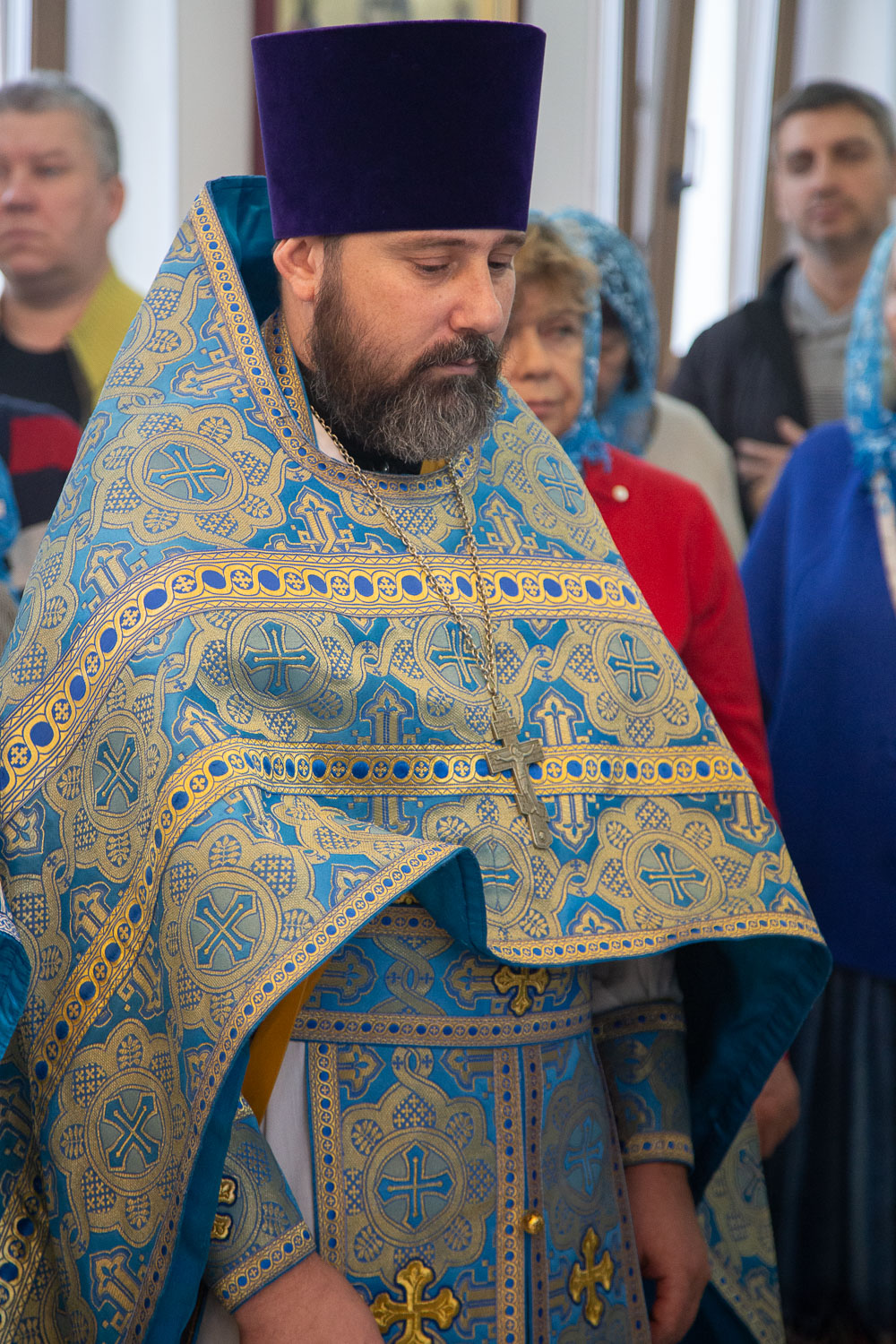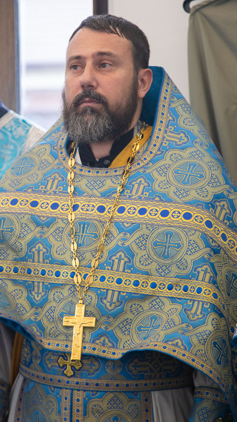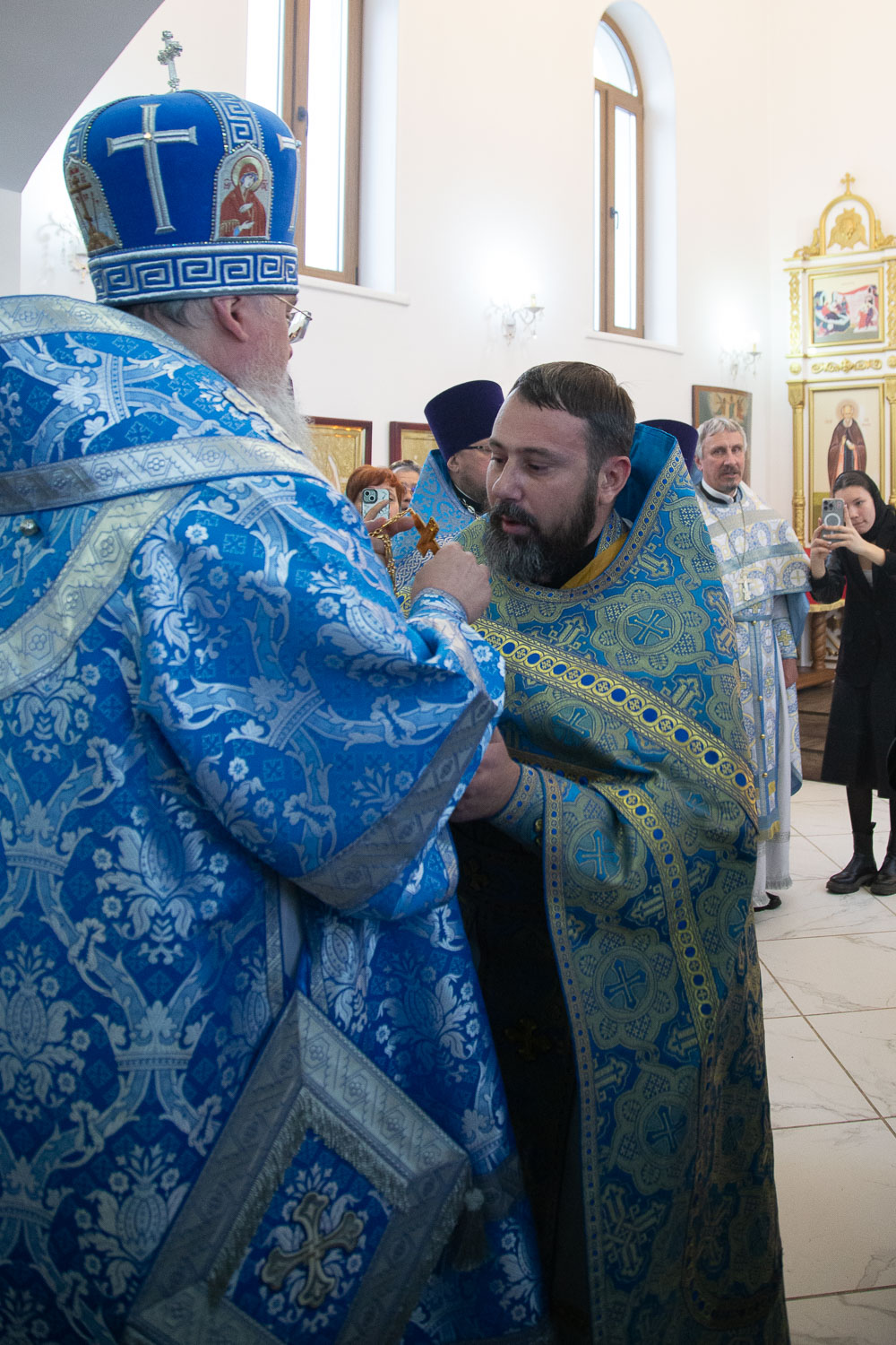 На малом входе, настоятель храма иерей Роман Хамадиев был удостоен права ношения наперсного креста золотого цвета.