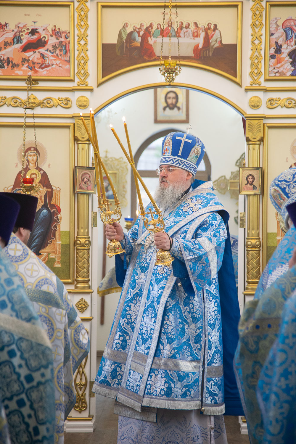 По окончании богослужения глава Красноярской митрополии совершил славление Пресвятой Богородице и обратился к собравшимся с архипастырским словом.