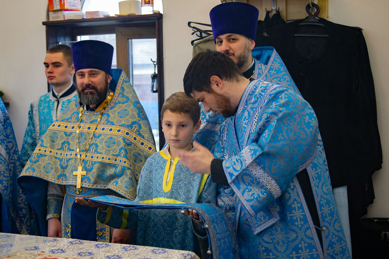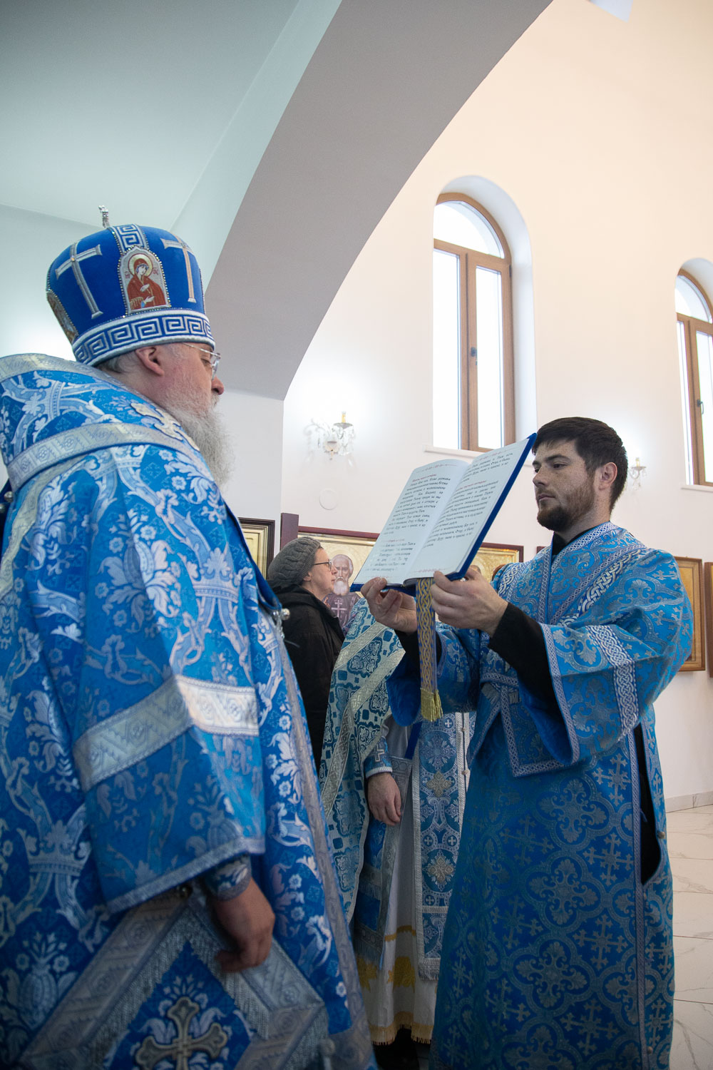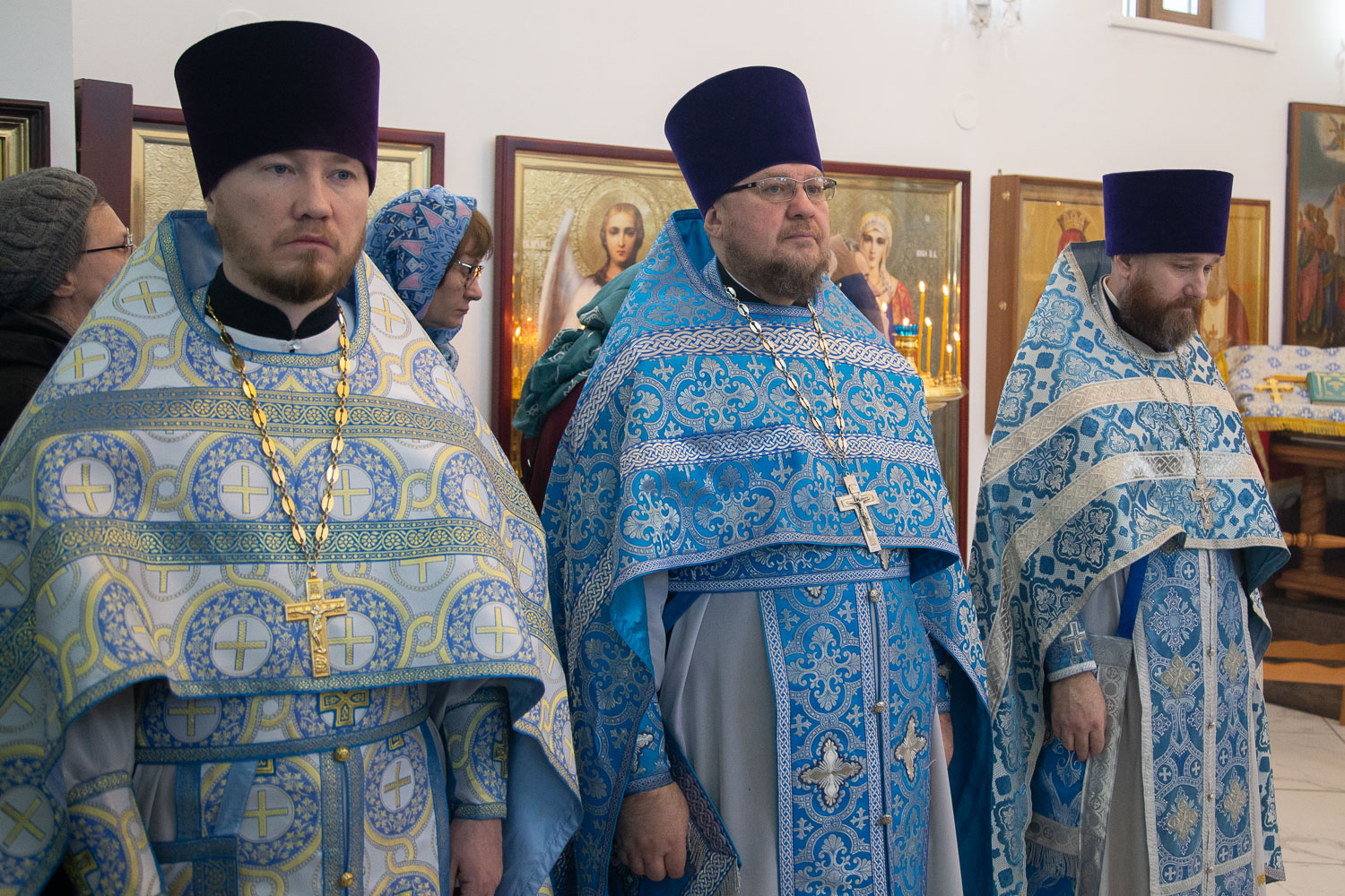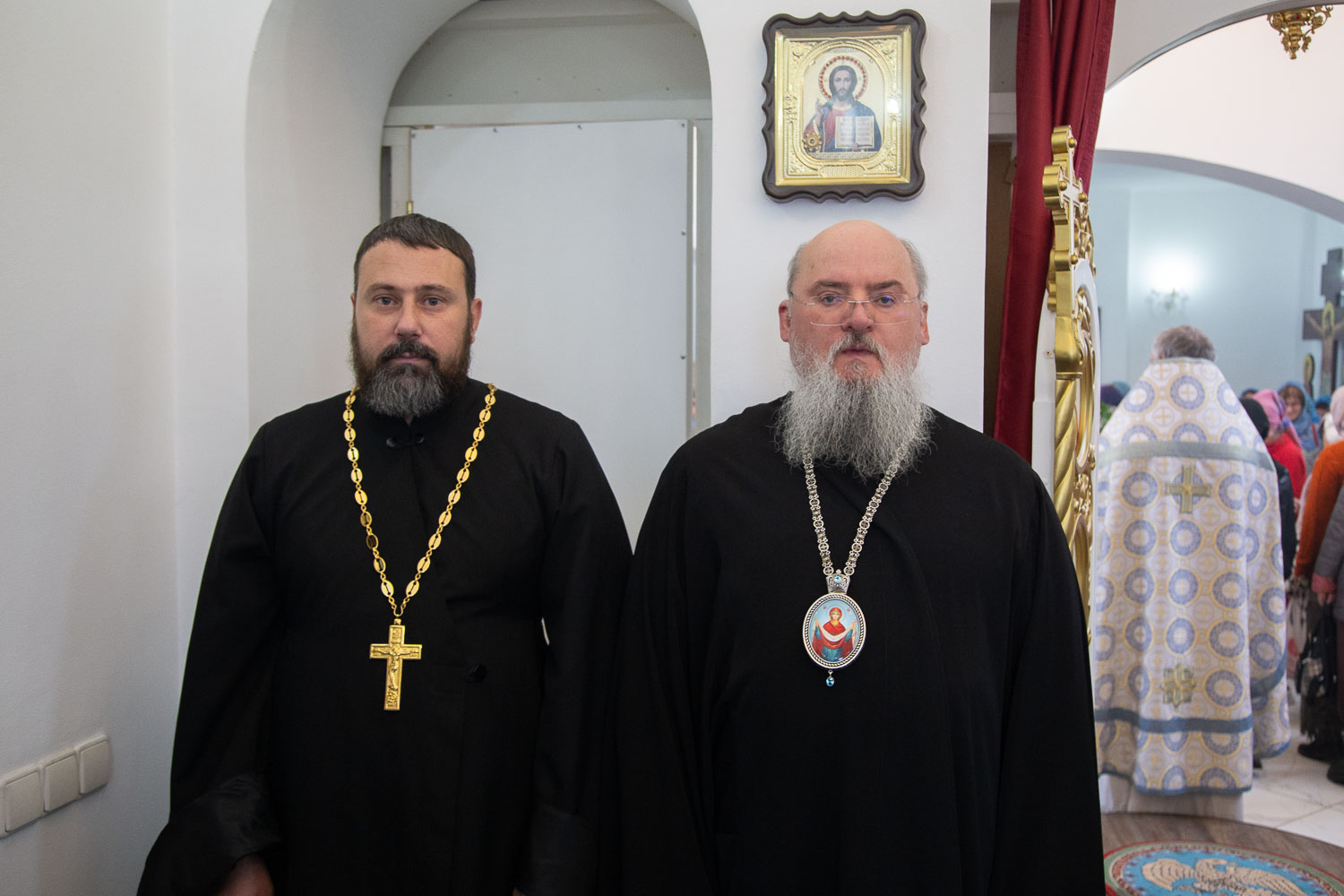 Его Высокопреосвященству сослужили: руководитель административного секретариата Красноярской епархии, настоятель Покровского кафедрального собора города Красноярска протоиерей Владимир Дорош; благочинный больничных храмов города Красноярска, настоятель красноярских храмов апостола Андрея Первозванного и великомученика Димитрия Солунского иерей Виталий Вальтер; председатель миссионерского отдела Красноярской епархии, благочинный церквей Красноярского округа, настоятель храма Трёх Святителей Великих города Красноярска иерей Василий Вершинский; настоятель храма иконы Божией Матери «Спорительница хлебов» иерей Роман Хамадиев; личный секретарь-референт главы Красноярской митрополии, штатный клирик храма Иоанна Предтечи города Красноярска иерей Владимир Лужков.