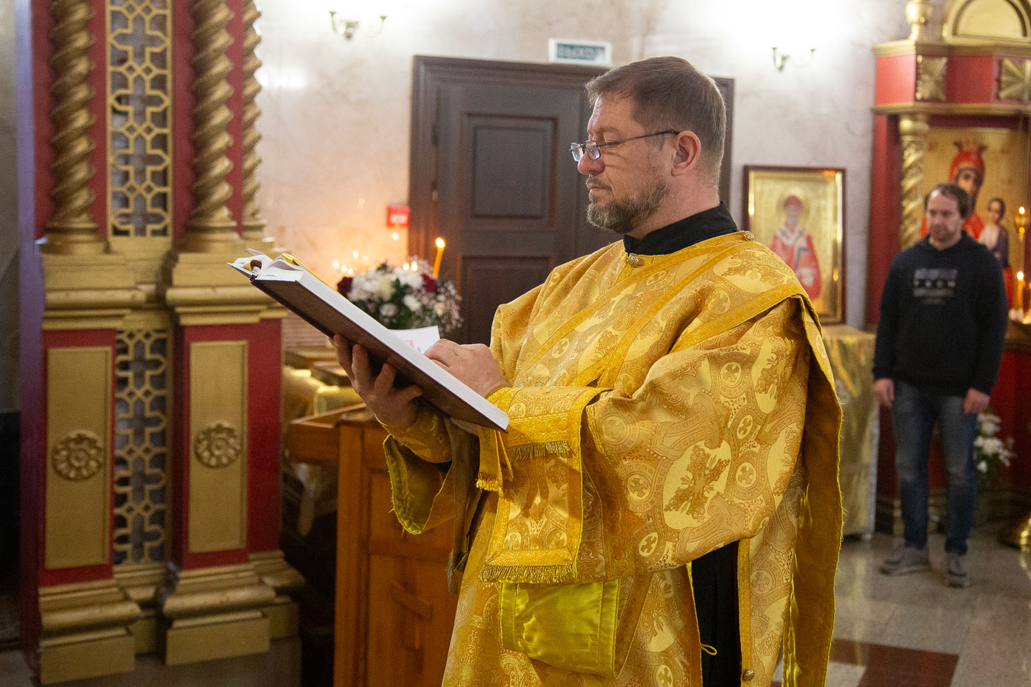 Богослужебные песнопения исполнил хор красноярского храма апостола Луки (регент — Кирилл Русяев).