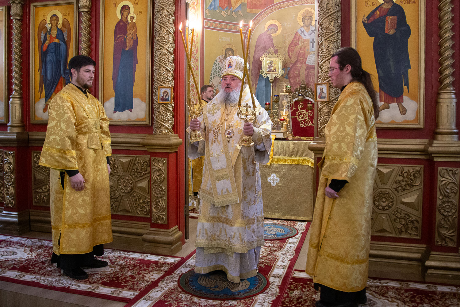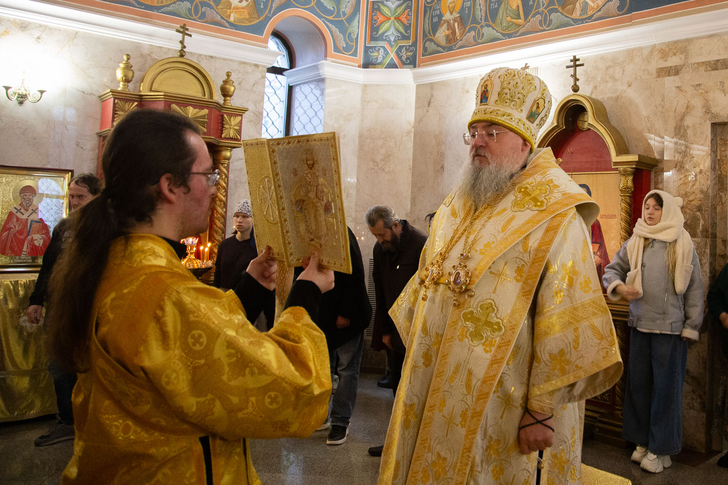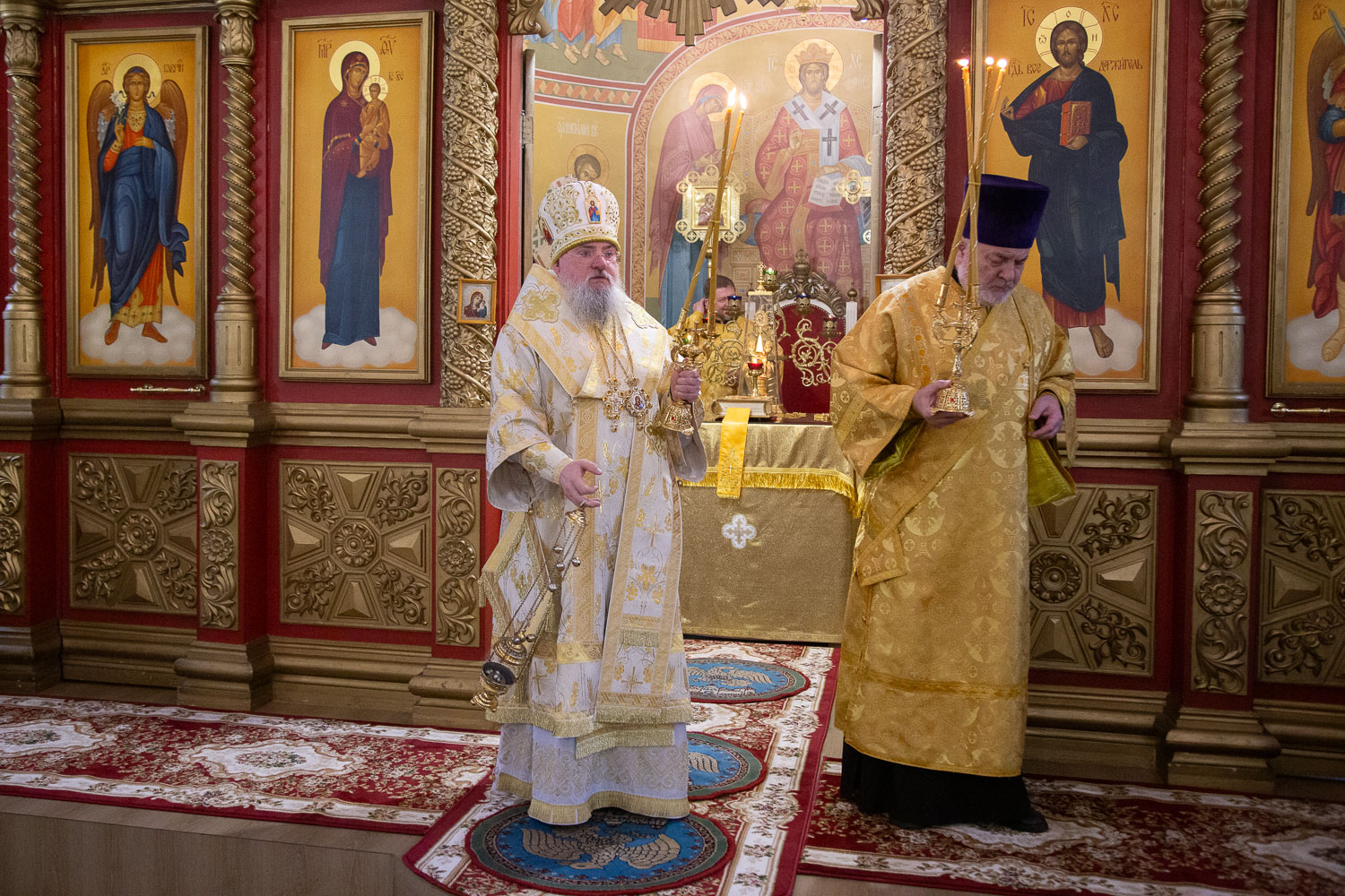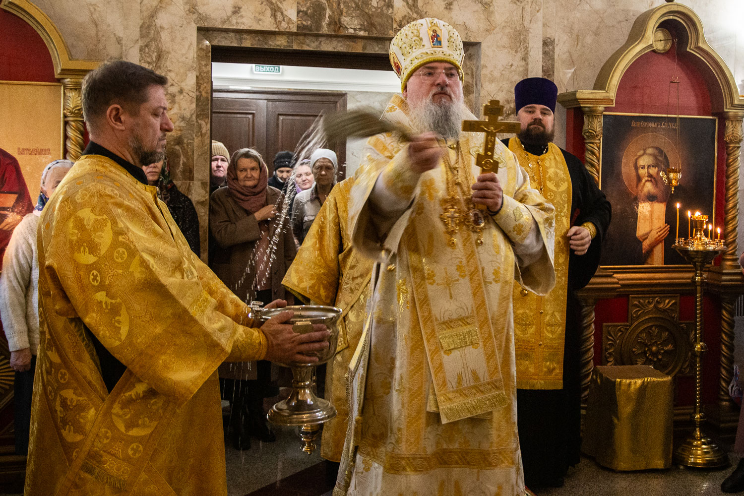 Его Высокопреосвященству сослужили: руководитель административного секретариата Красноярской епархии, настоятель Покровского кафедрального собора города Красноярска протоиерей Владимир Дорош; настоятель храма апостола Луки города Красноярска протоиерей Павел Красков; личный секретарь-референт главы Красноярской митрополии, штатный клирик храма Иоанна Предтечи города Красноярска иерей Владимир Лужков.
