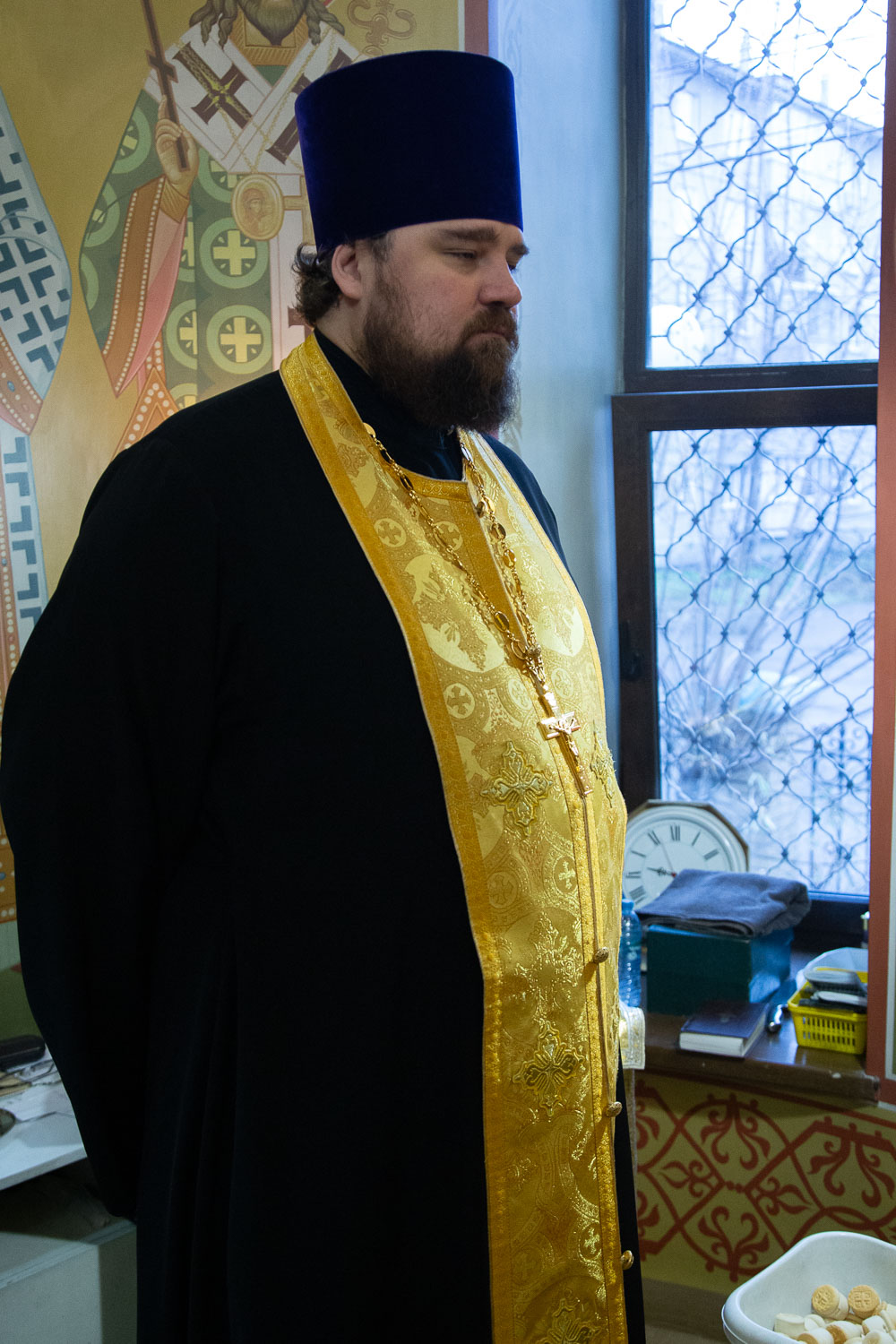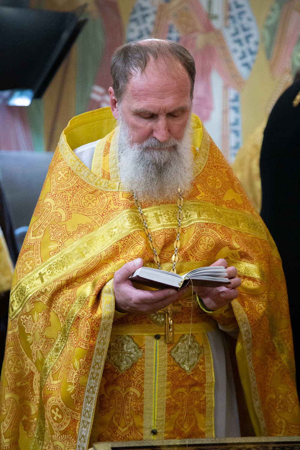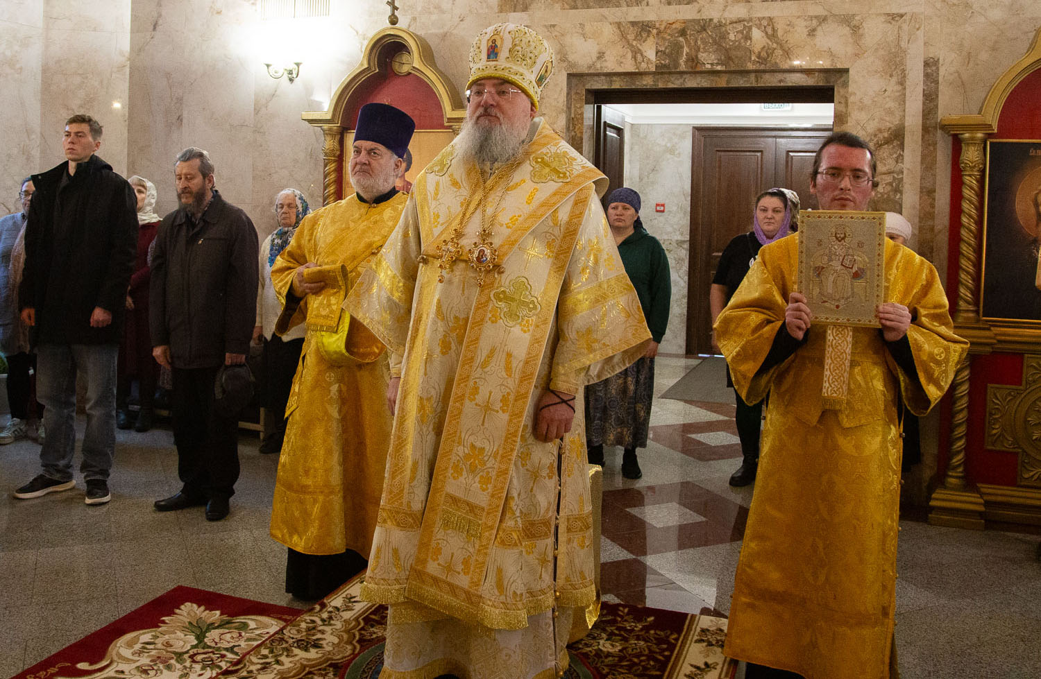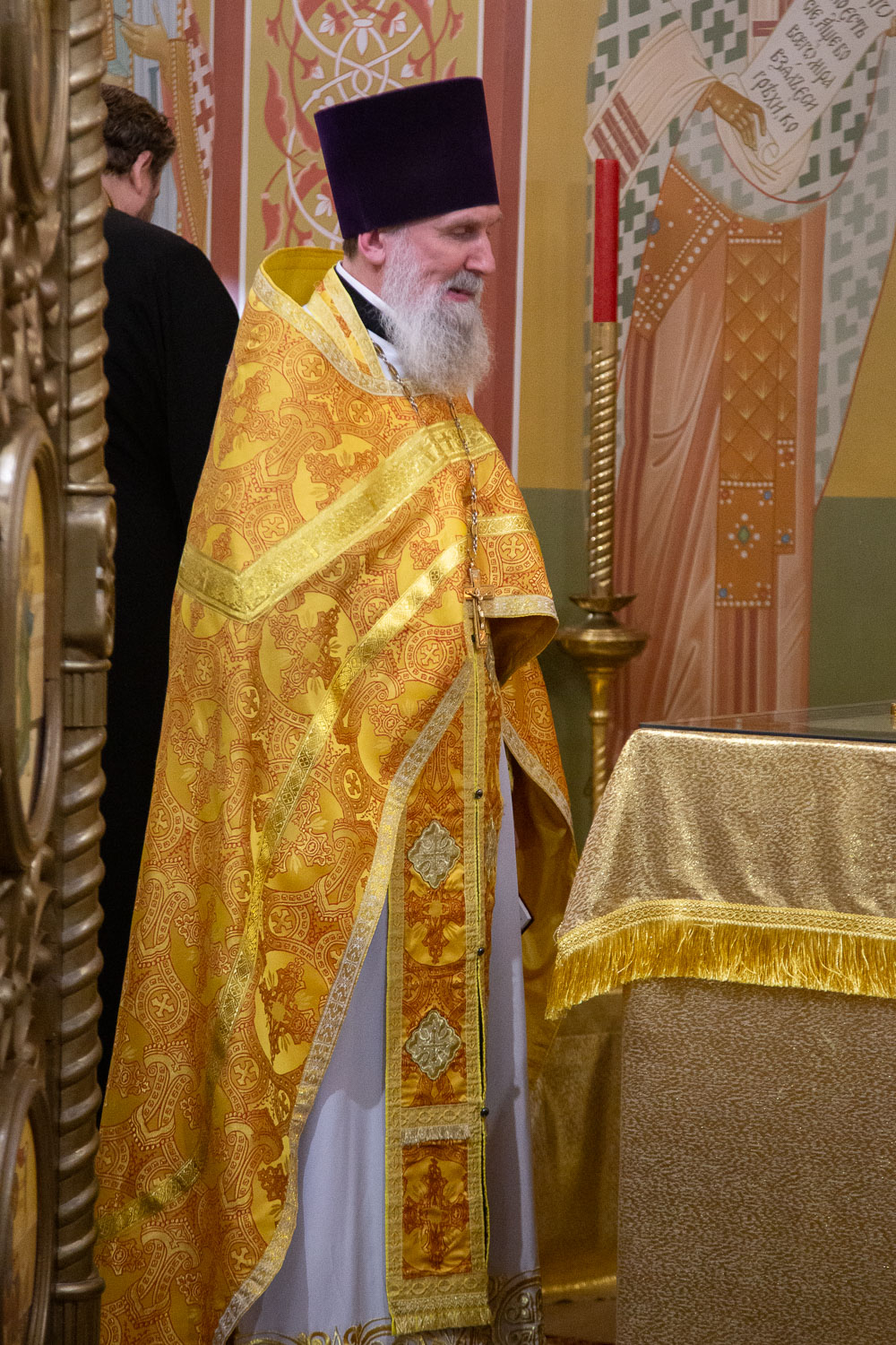 Его Высокопреосвященству сослужили: руководитель административного секретариата Красноярской епархии, настоятель Покровского кафедрального собора города Красноярска протоиерей Владимир Дорош; настоятель храма апостола Луки города Красноярска протоиерей Павел Красков; личный секретарь-референт главы Красноярской митрополии, штатный клирик храма Иоанна Предтечи города Красноярска иерей Владимир Лужков.
