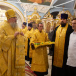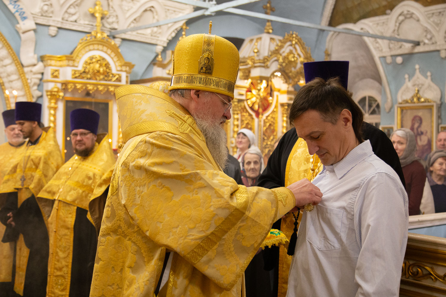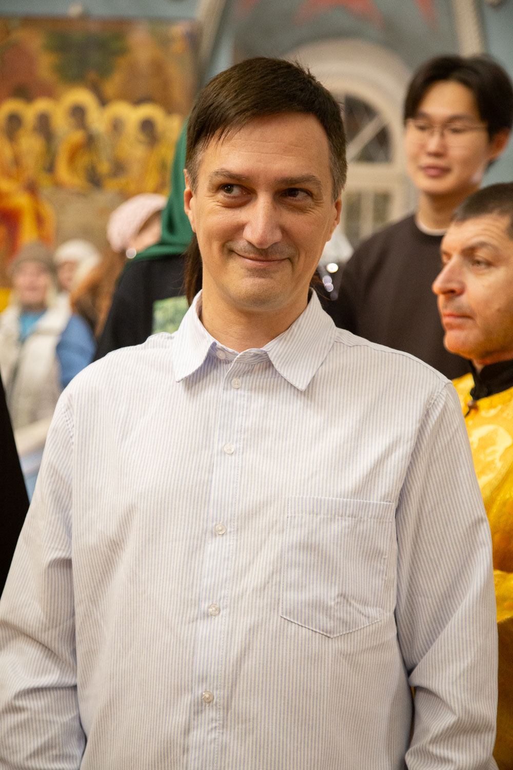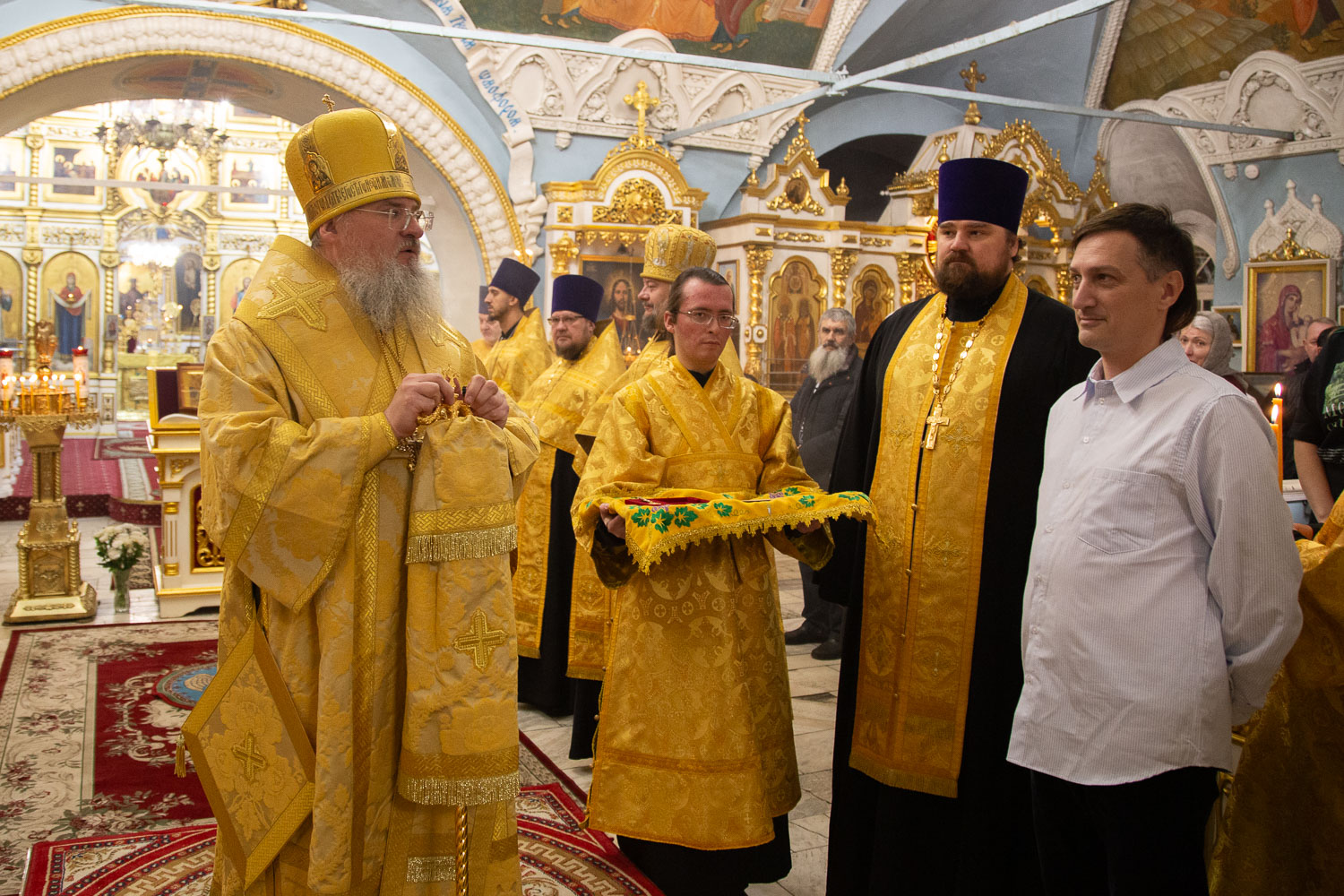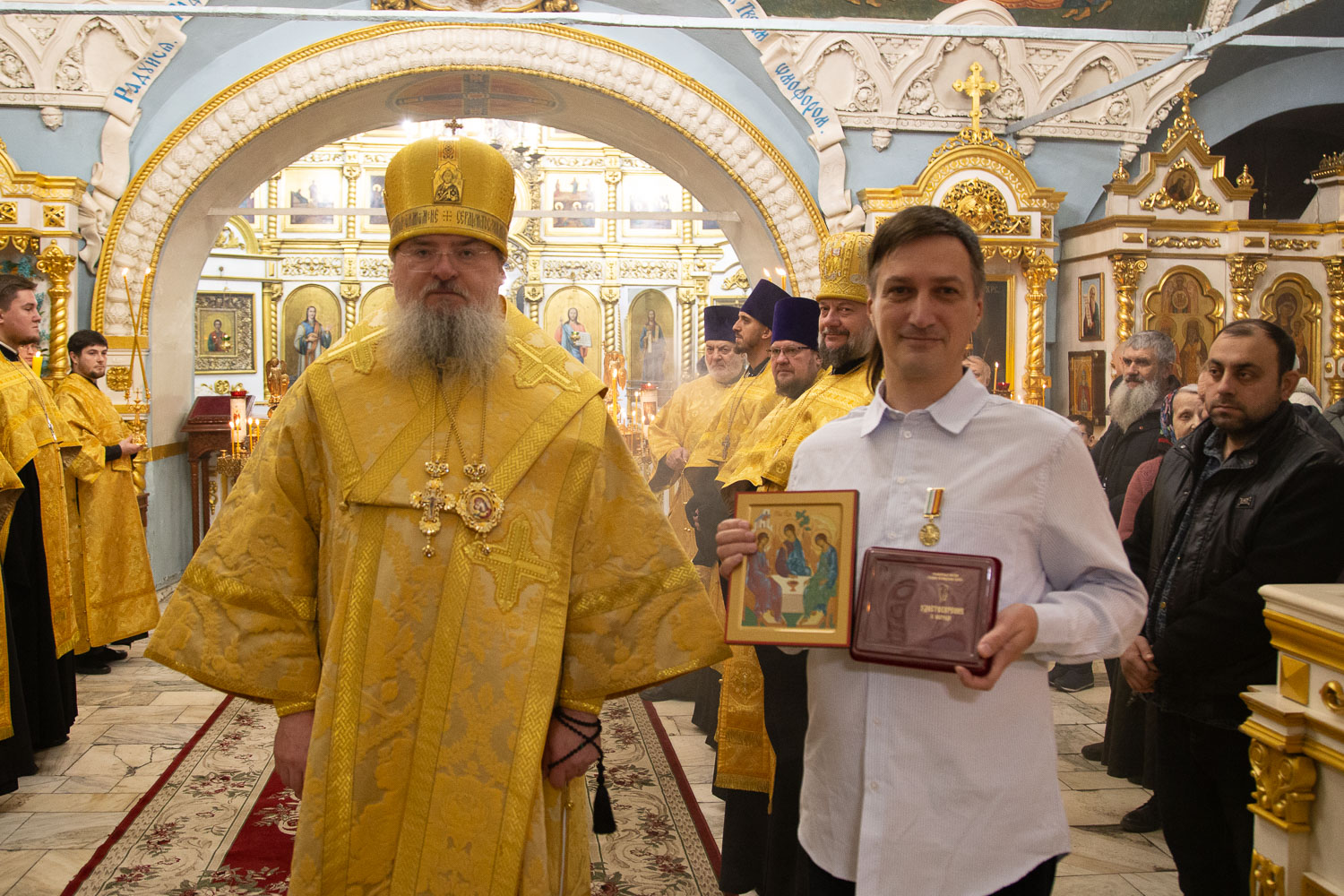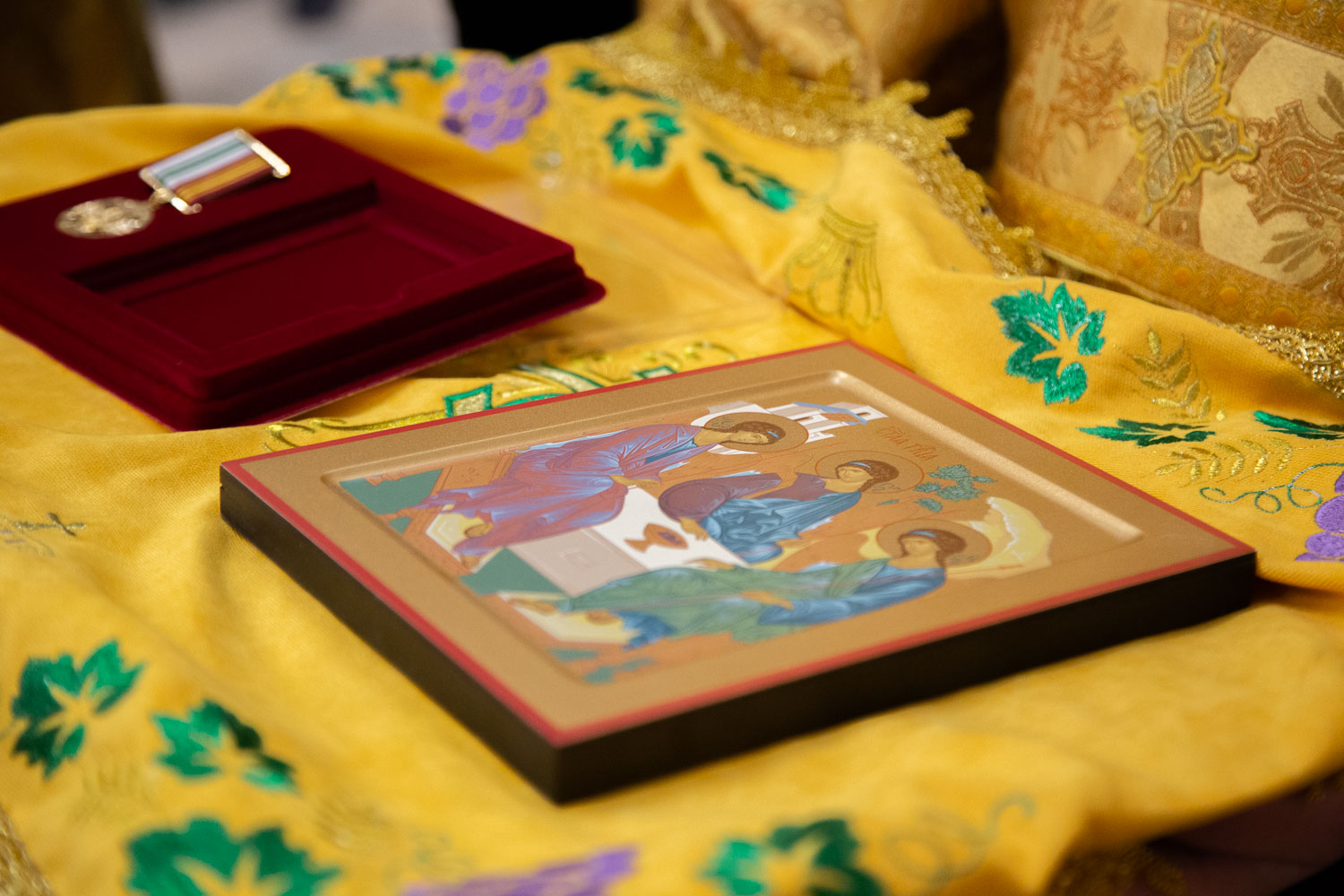 За всенощным бдением митрополит Никита удостоил награды Красноярской епархии — медали священномученика Амфилохия, епископа Красноярского, III степени церковного регента, заслуженного работника культуры Дмитрия Васяновича.