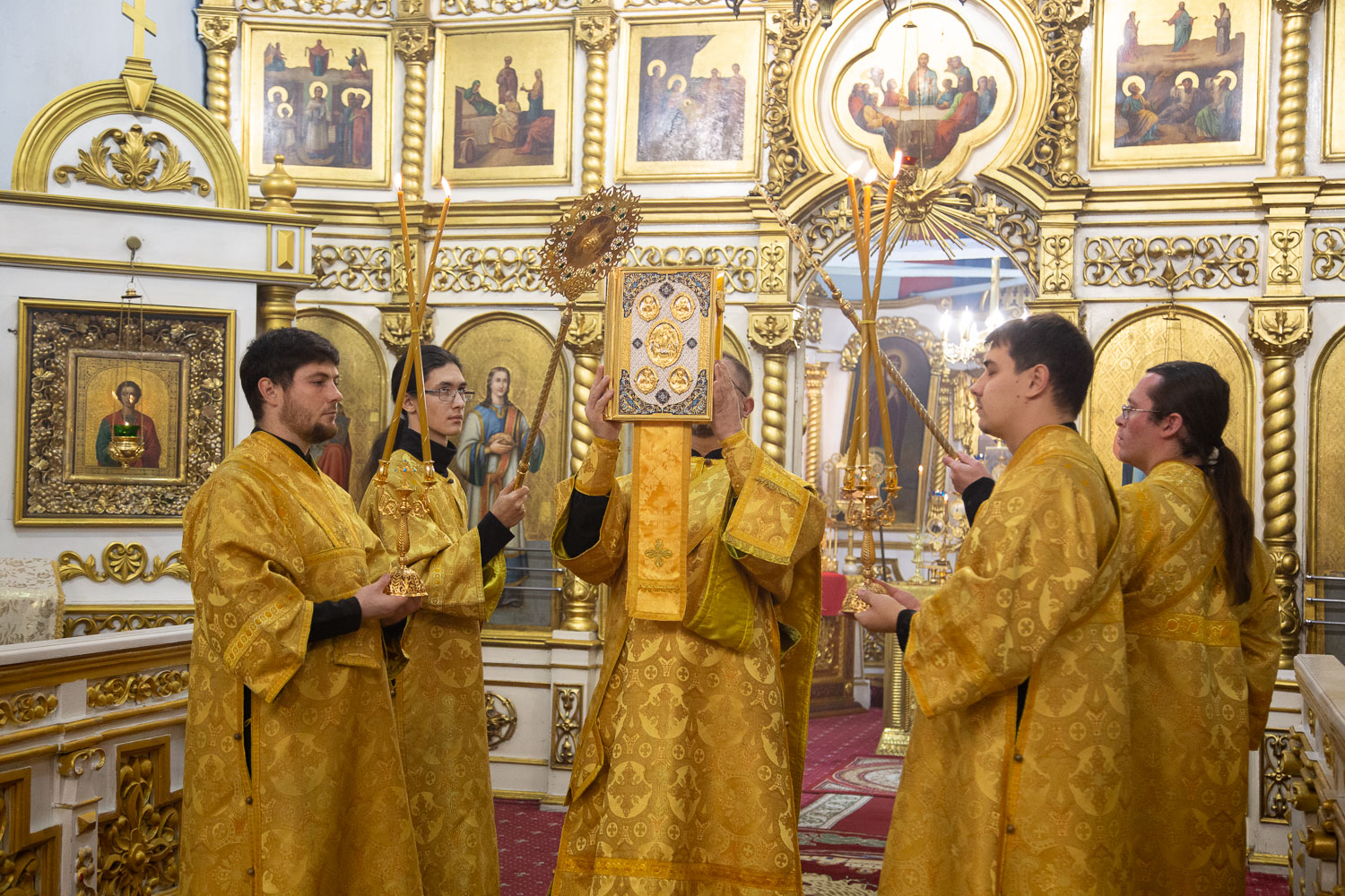 Глава Красноярской митрополии совершил елеопомазание молящихся, а по окончании богослужения обратился к собравшимся с архипастырским словом.
