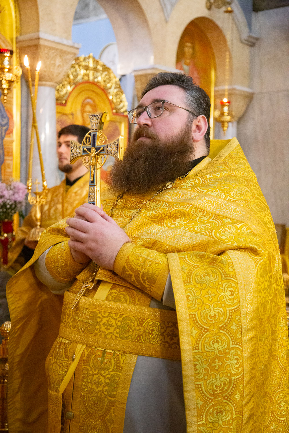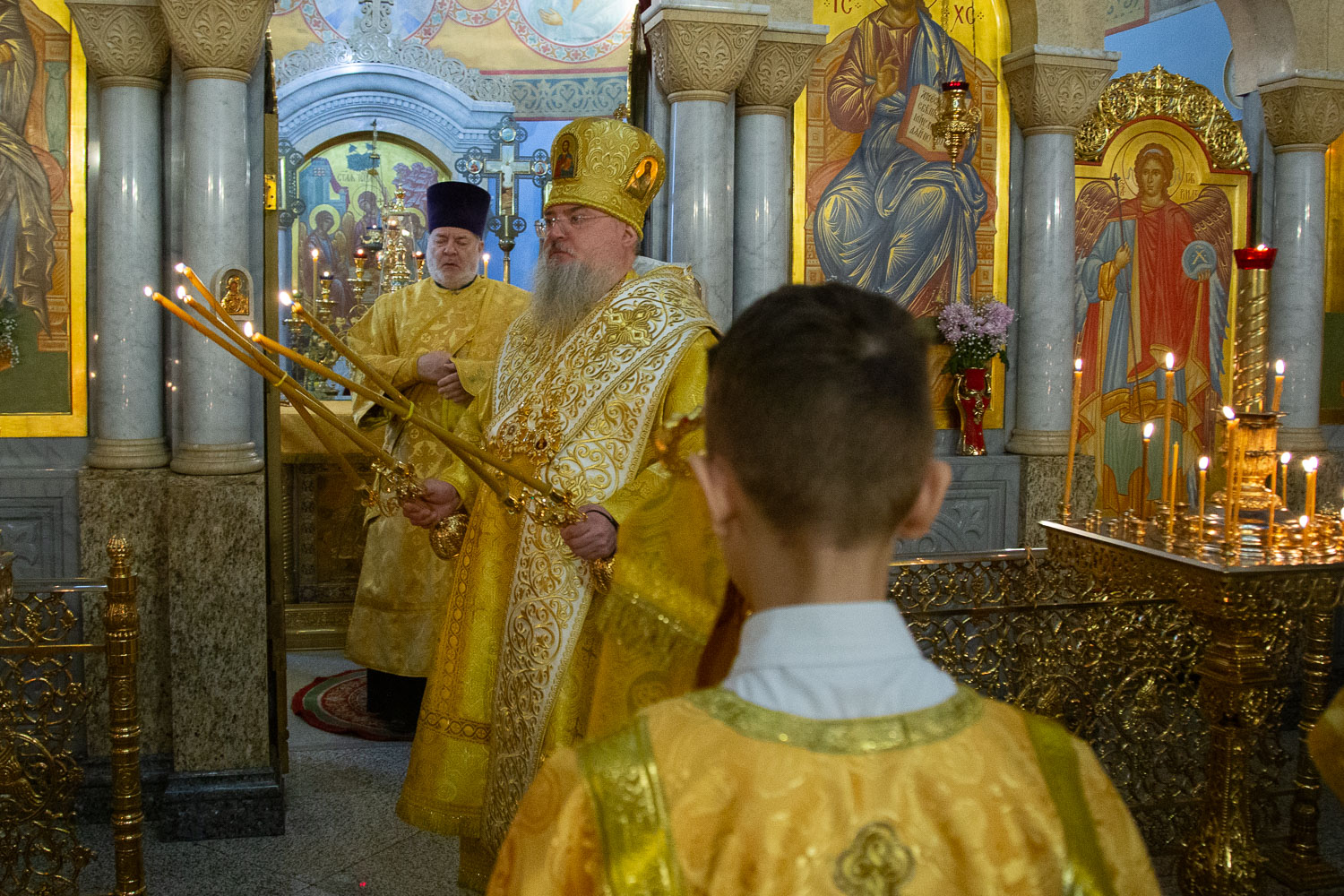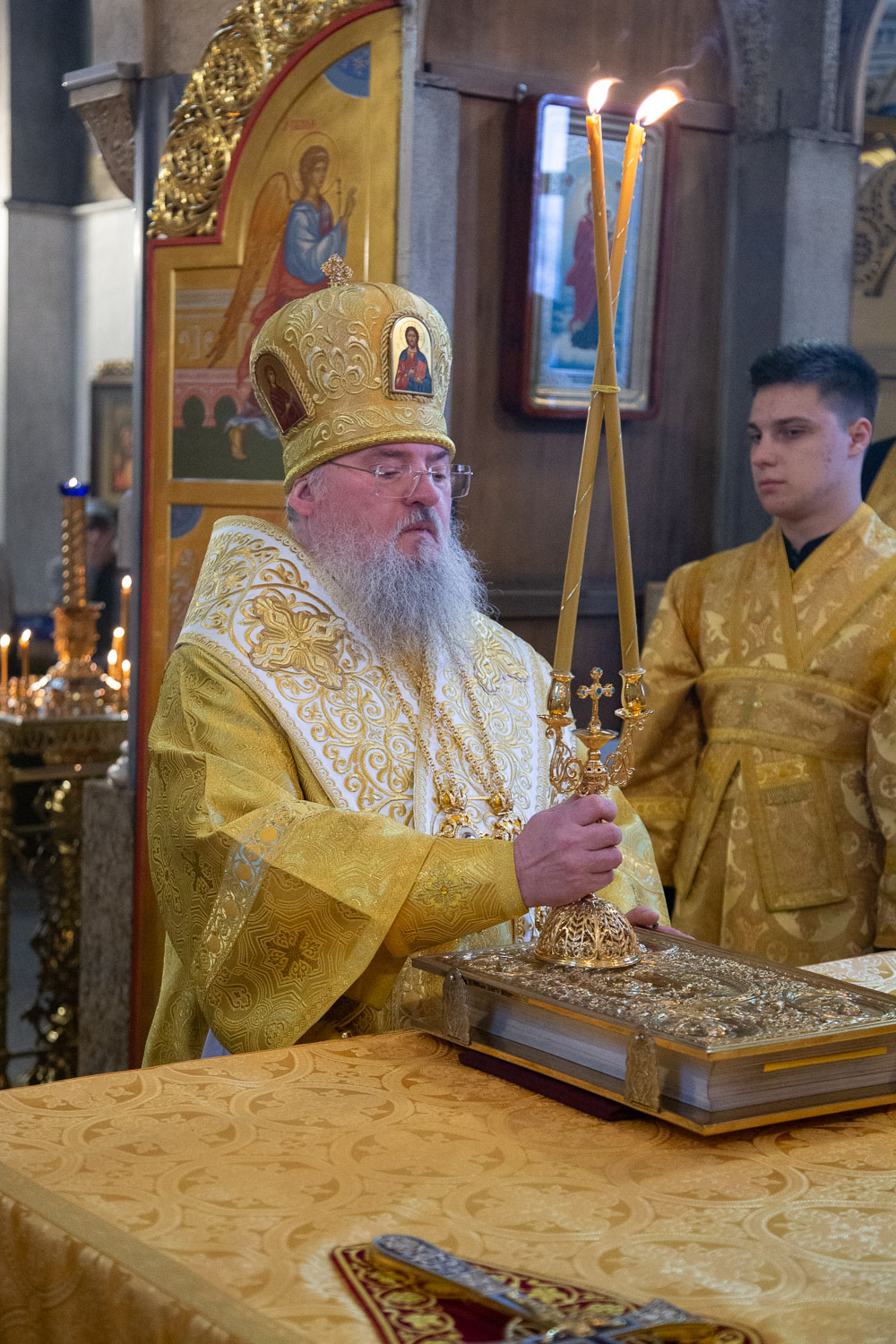 Его Высокопреосвященству сослужили: руководитель отдела религиозного образования и катехизации Красноярской епархии, настоятель храма святых мучениц Веры, Надежды, Любови и матери их Софии города Красноярска иерей Андрей Бабин и духовенство храмов Красноярской епархии.