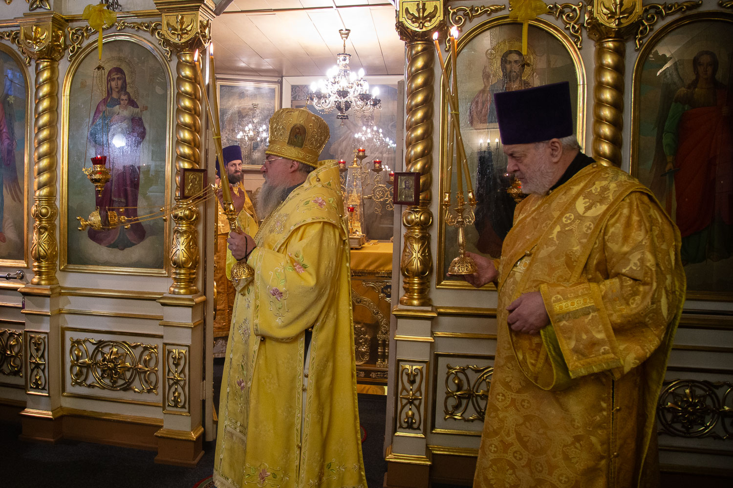 Его Высокопреосвященству сослужили: настоятель храма святителя Николая Чудотворца иерей Игорь Сироткин и духовенство храмов Красноярской епархии.