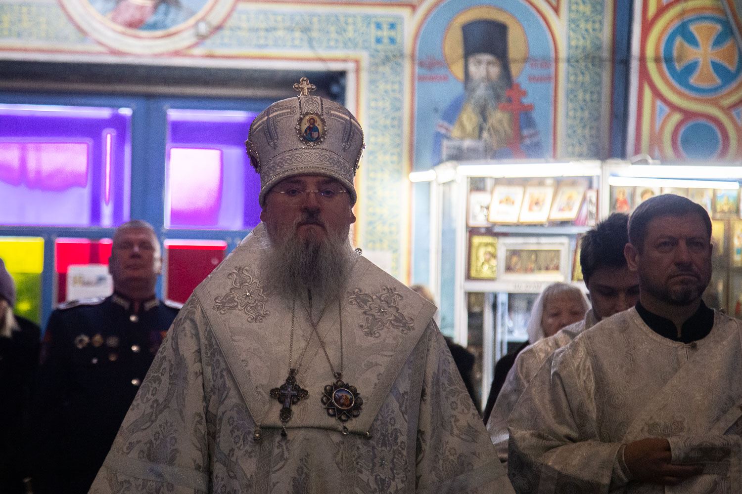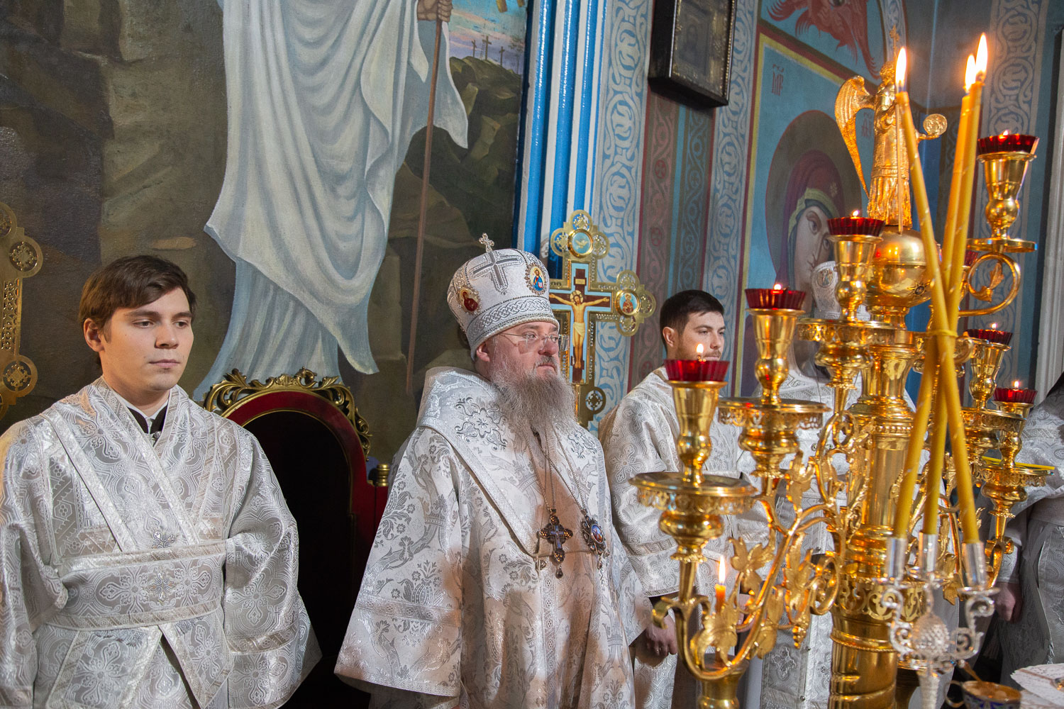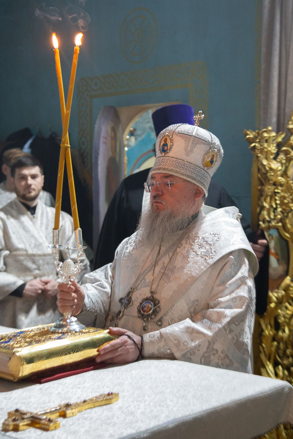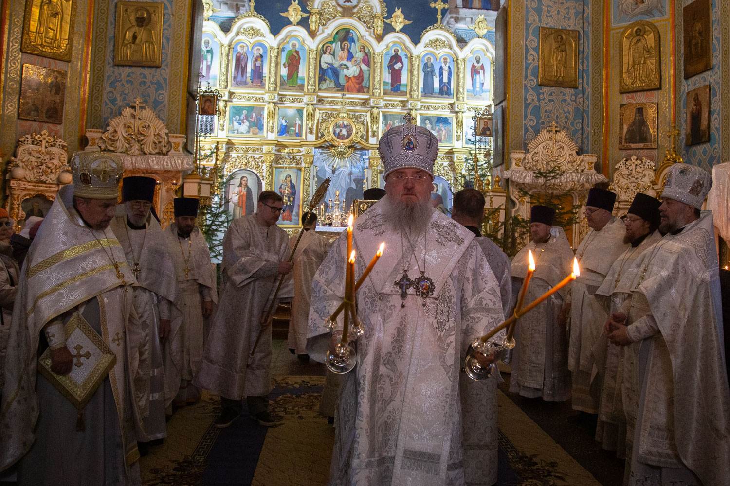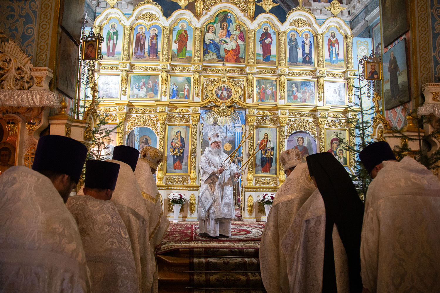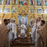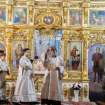 Его Высокопреосвященству сослужили: благочинный церквей Ачинского округа, настоятель Казанского собора города Ачинска митрофорный протоиерей Евгений Фролов и духовенство храмов Красноярской епархии.