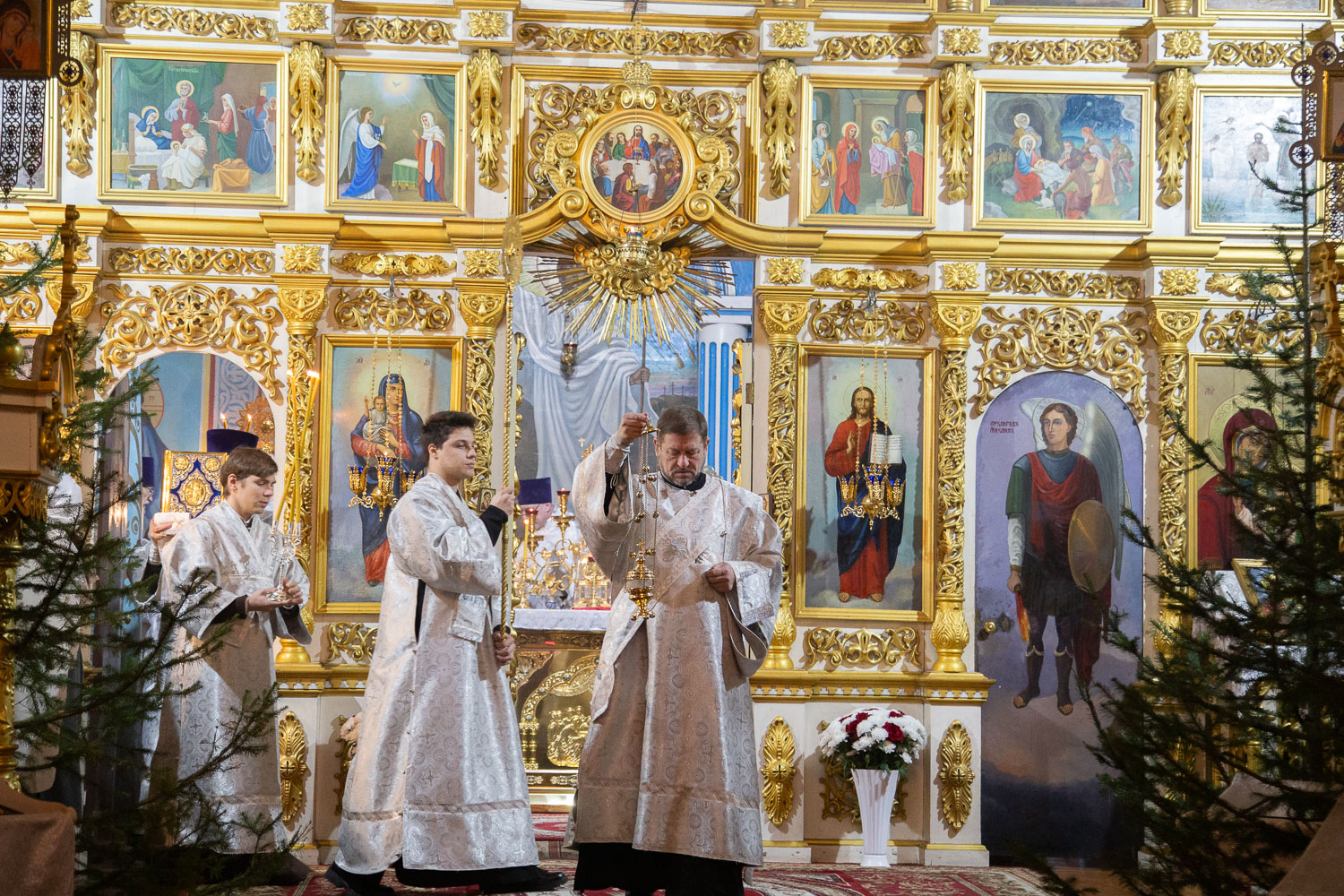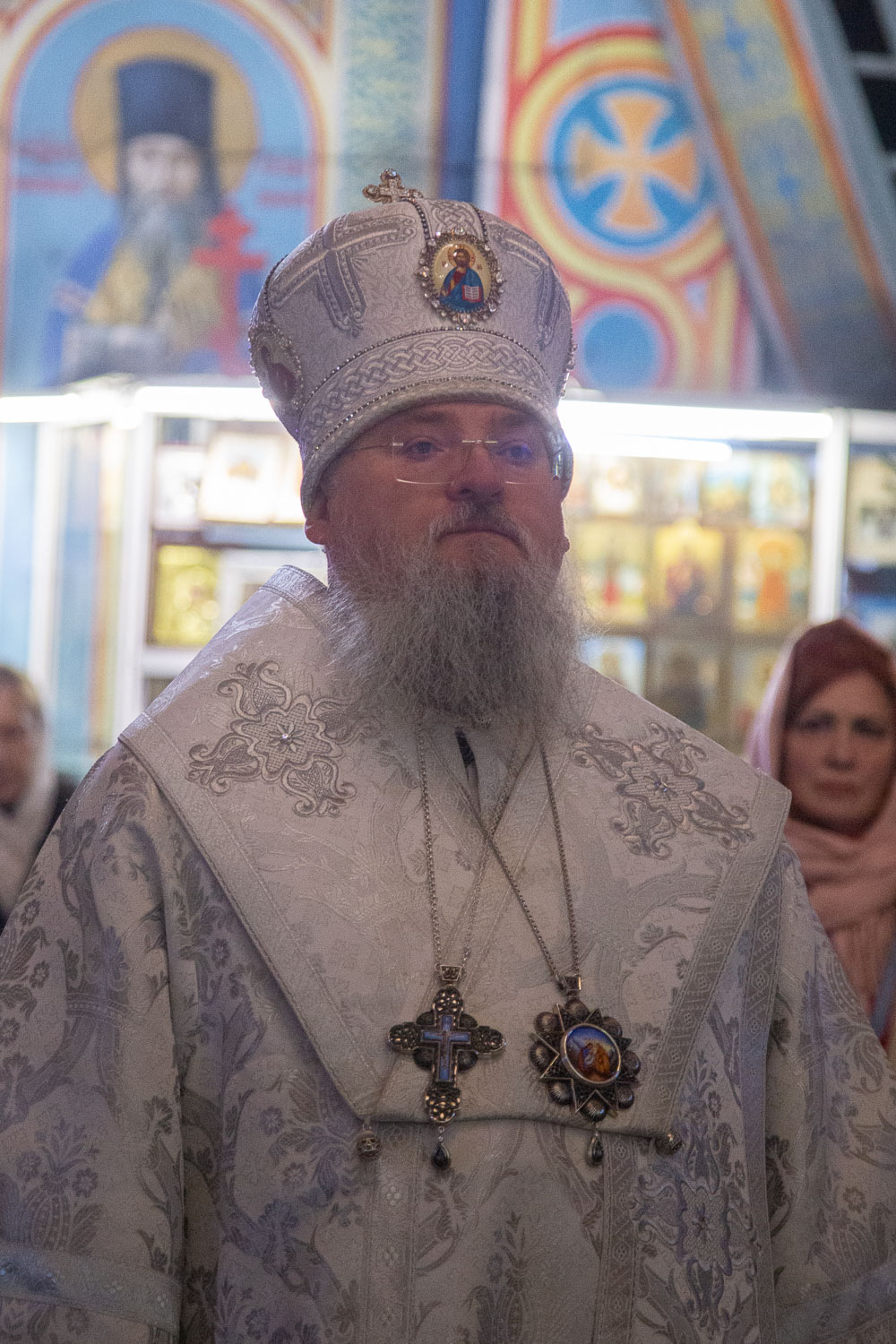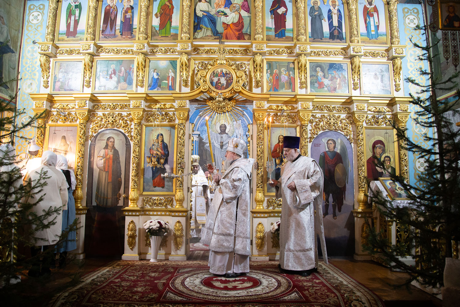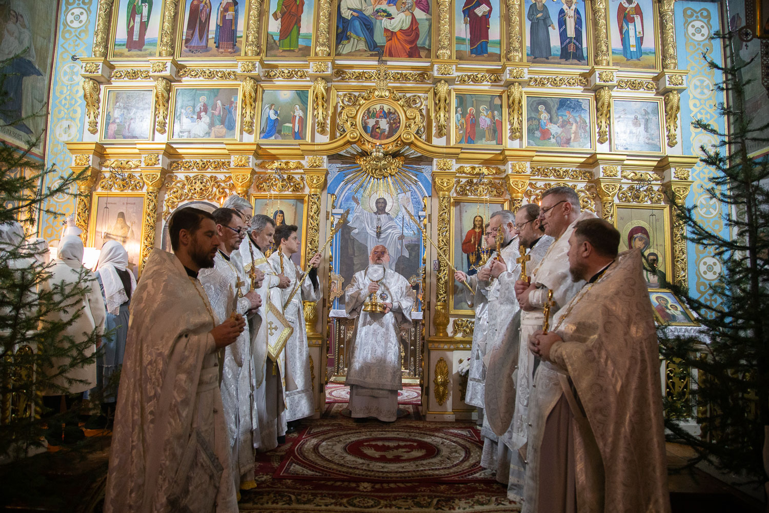 Его Высокопреосвященству сослужили: благочинный церквей Ачинского округа, настоятель Казанского собора города Ачинска митрофорный протоиерей Евгений Фролов и духовенство храмов Красноярской епархии.
