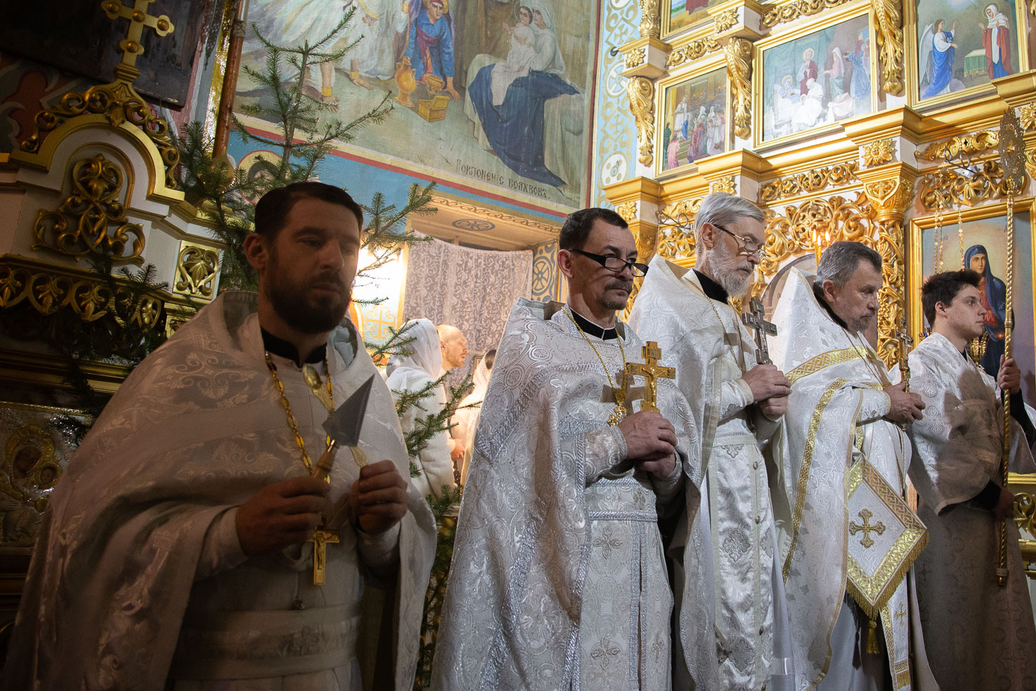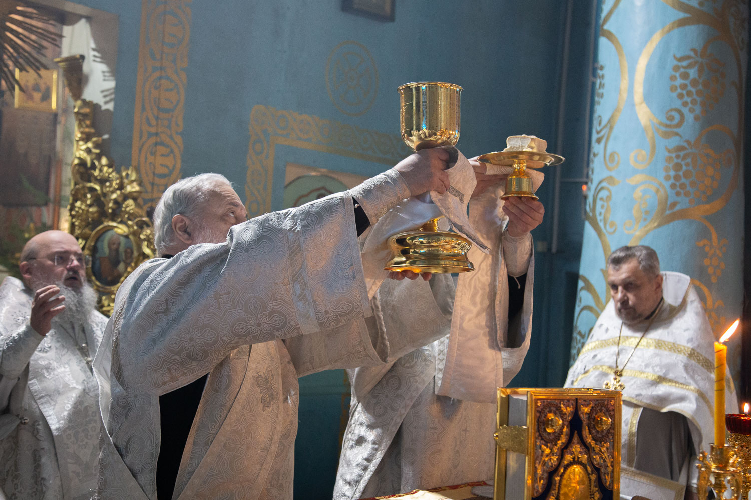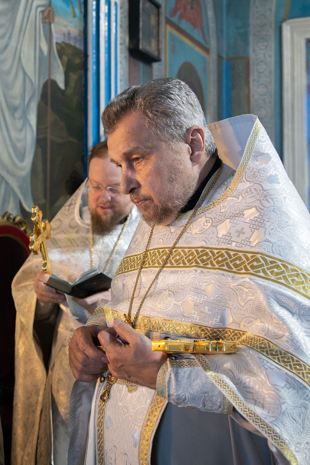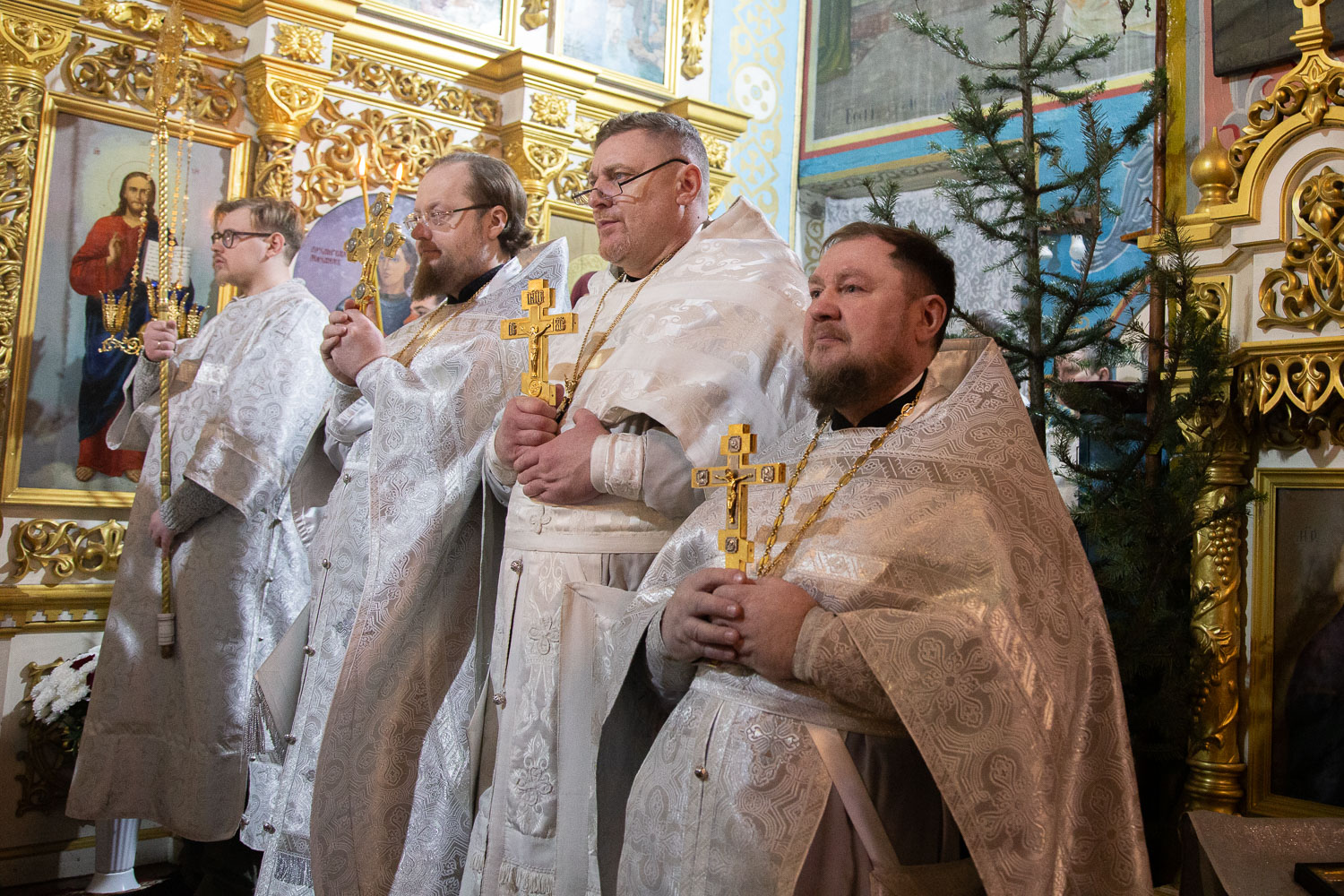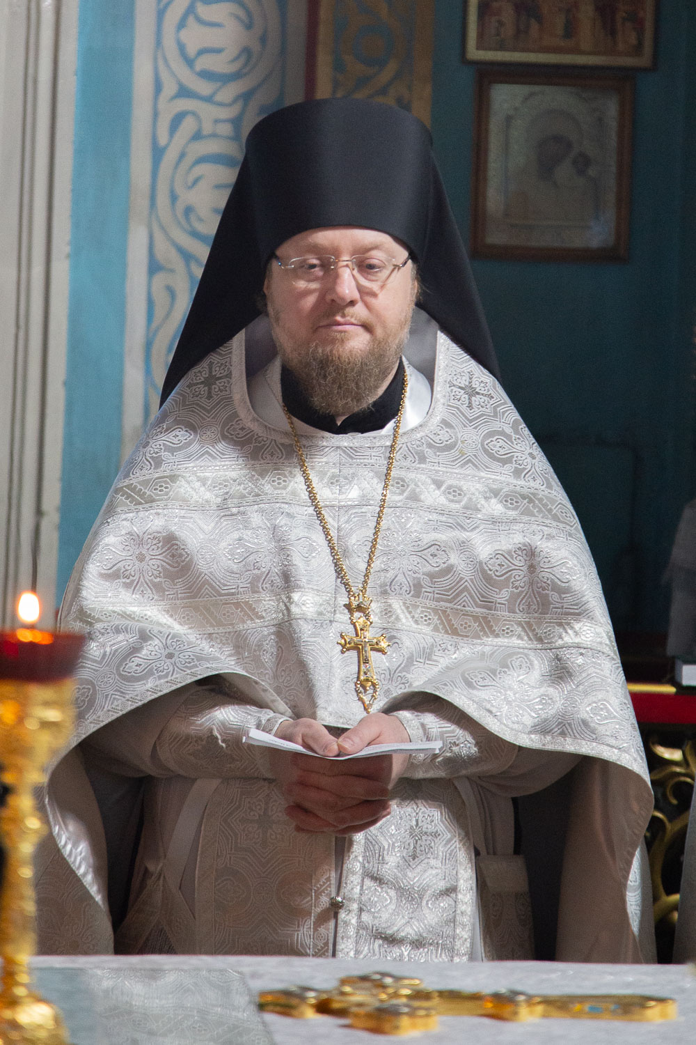 Его Высокопреосвященству сослужили: благочинный церквей Ачинского округа, настоятель Казанского собора города Ачинска митрофорный протоиерей Евгений Фролов и духовенство храмов Красноярской епархии.