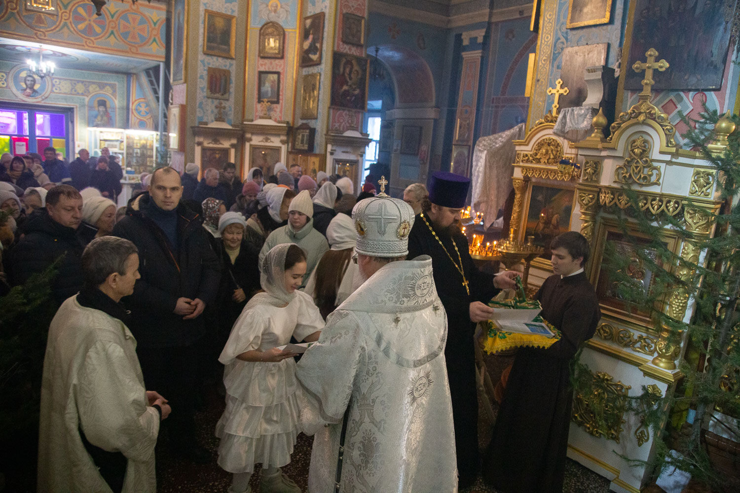 В завершение богослужения владыка Никита обратился к собравшимся с архипастырским словом и вручил православные календари на 2026 год и сладкие подарки.