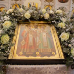 За Литургией были вознесены особые прошения и молитва о Святой Руси. По благословению Святейшего Патриарха Московского и всея Руси Кирилла эта сугубая молитва совершается во всех храмах Русской Православной Церкви за каждым богослужением.
