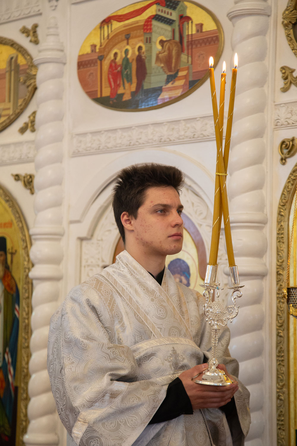Его Высокопреосвященству сослужили: благочинный церквей Красноярского округа, настоятель храма Трех Святителей Великих Красноярска иерей Василий Вершинский и духовенство храмов Красноярской епархии.