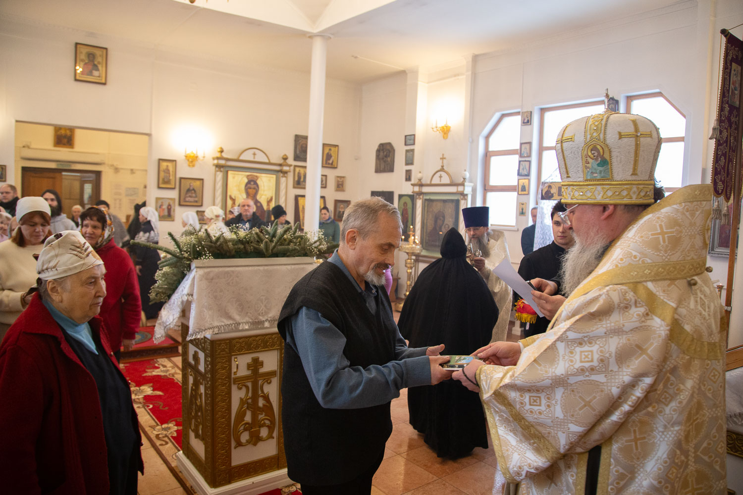 В завершение богослужения владыка Никита обратился к собравшимся с архипастырским словом, а также вручил православные календари и сладкие подарки всем прихожанам.